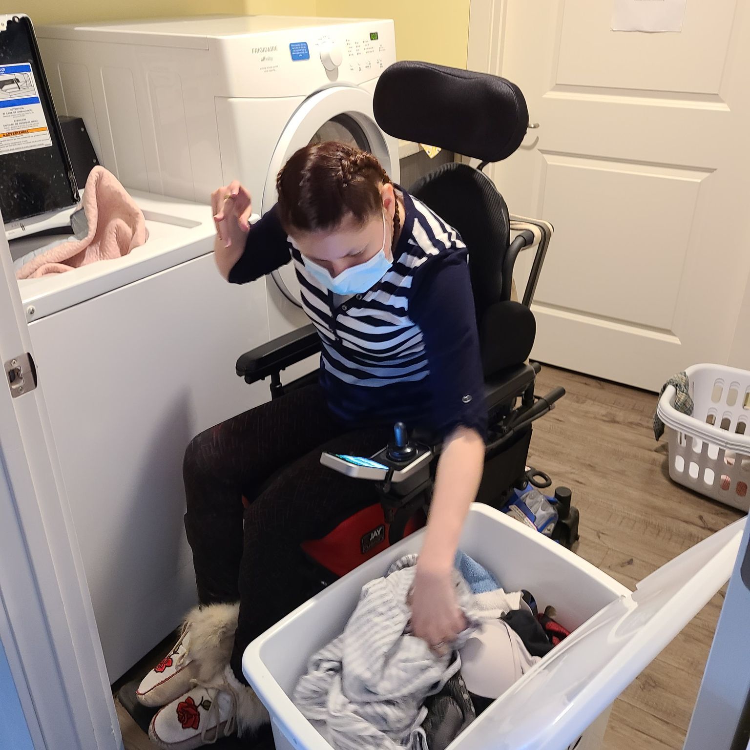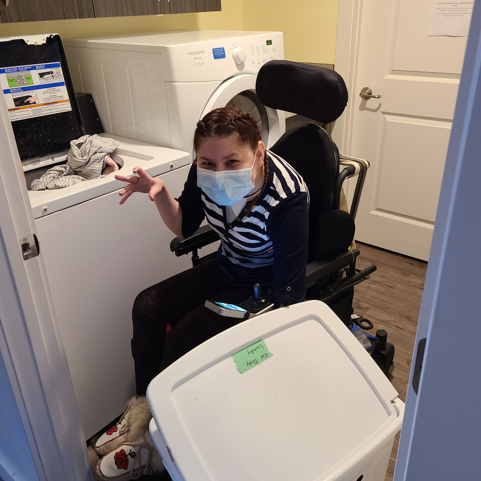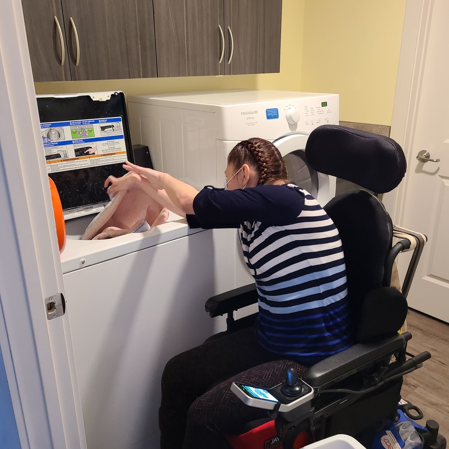 In the middle of March we got a new washer in the laundry room because the old washer was making a lot more noises and it was loud! I can’t really turn it on because I’m too short in my wheelchair and the buttons are too high up! I can still get my clothes in and the soap!