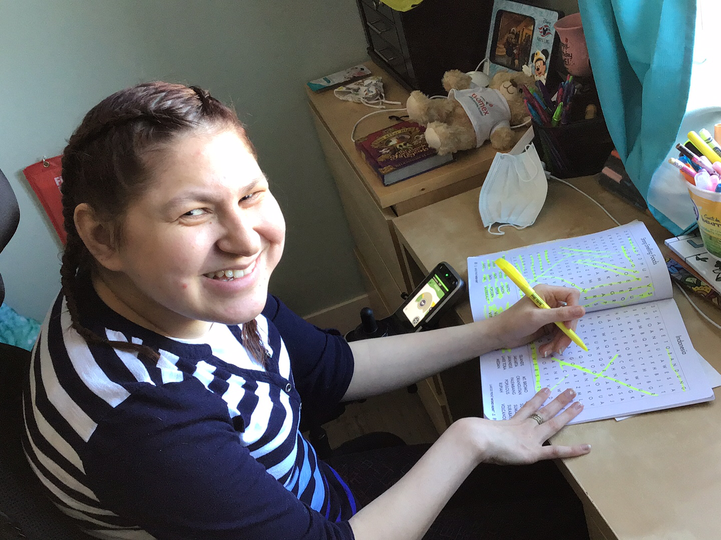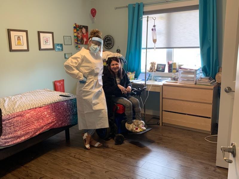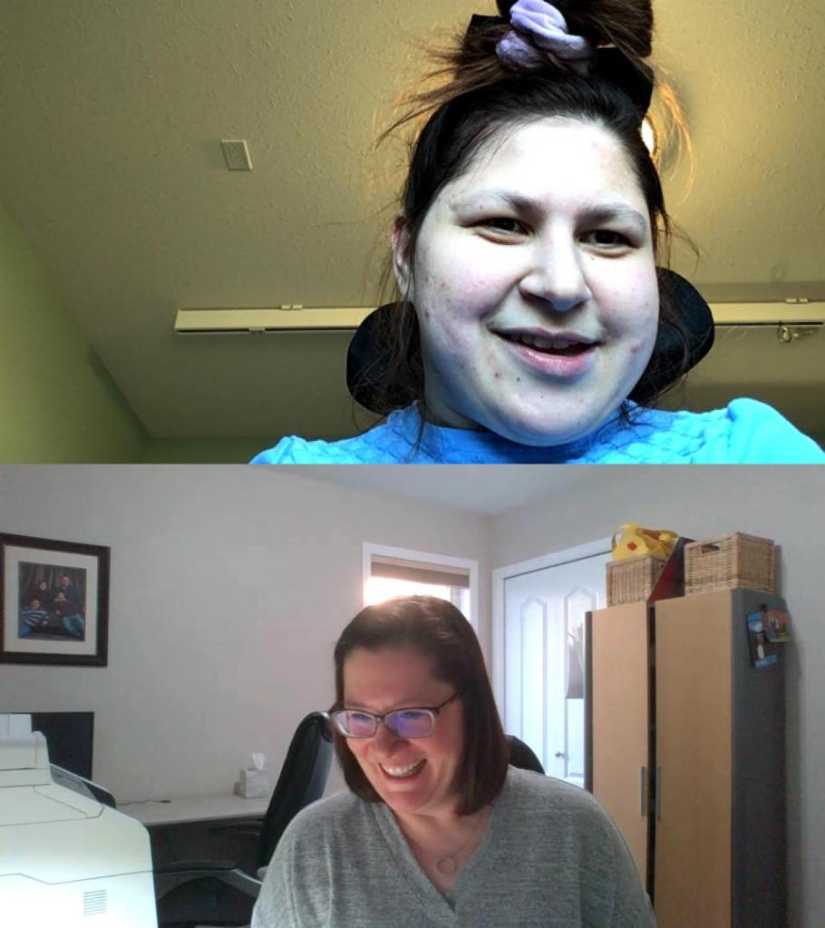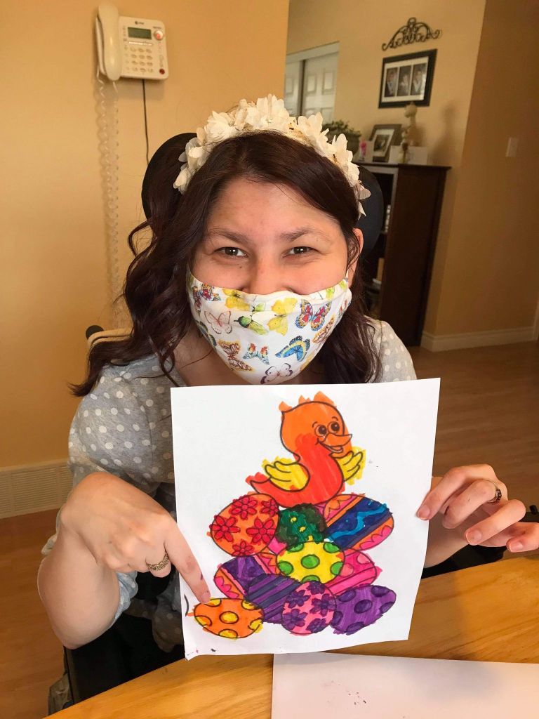 How did I keep busy in my room you may ask? In the morning I got fed in my bed with my head up, have tea at my desk in my bedroom. I can still get a shower in the morning! I am doing a lot of word searches! Our staff had dressed up in white gowns and blue shields and masked! I think it’s a learning experience for the whole world. I got to FaceTime with old staff Nancy from New Brunswick that moved back home two years ago.