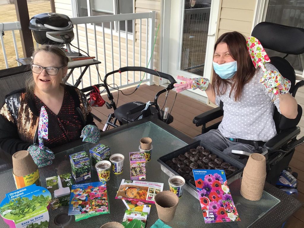 Theresa, my staff Kelsey and myself planted flowers and thyme, sunflowers, oregano, basil and parsley. We got flowers that butterflies like! My mom always plants flowers and has an amazing garden in the backyard! I love flowers and gardens too! My love of planting flowers comes from my Mom, my Auntie, my Grandma on Mom’s side! I can’t wait for them to grow!