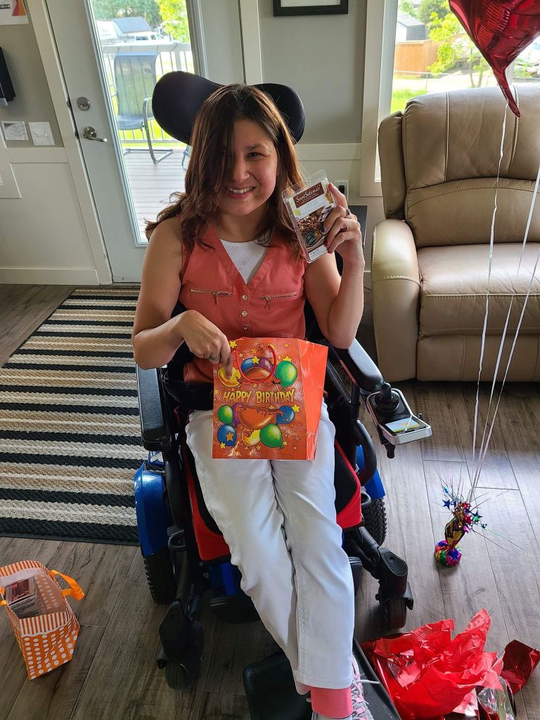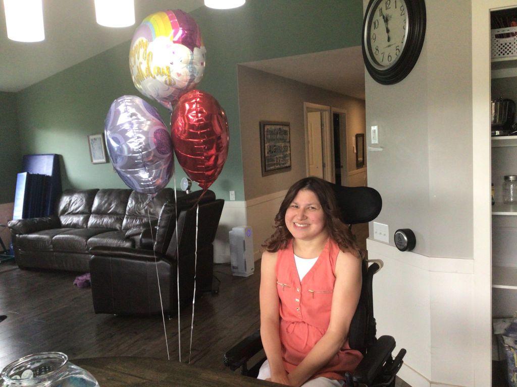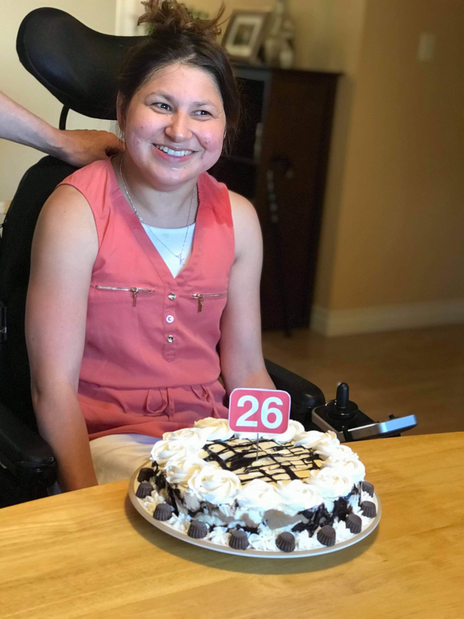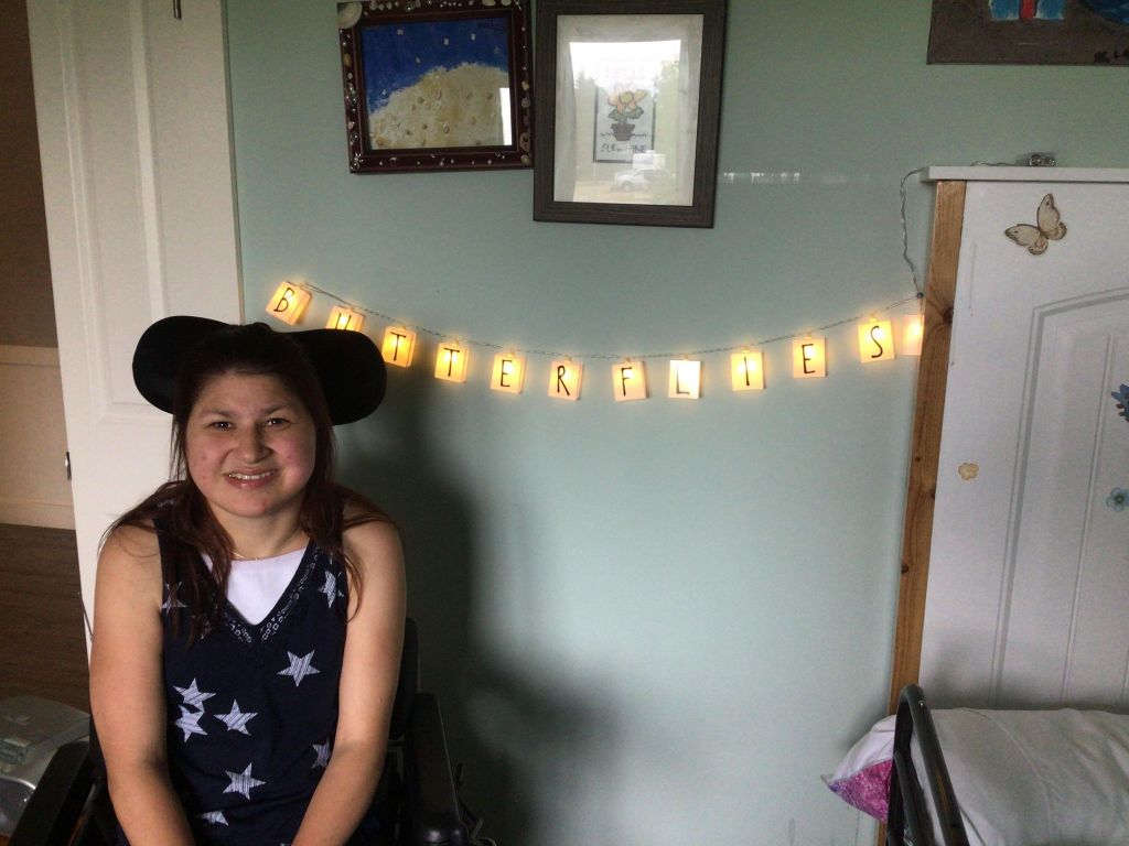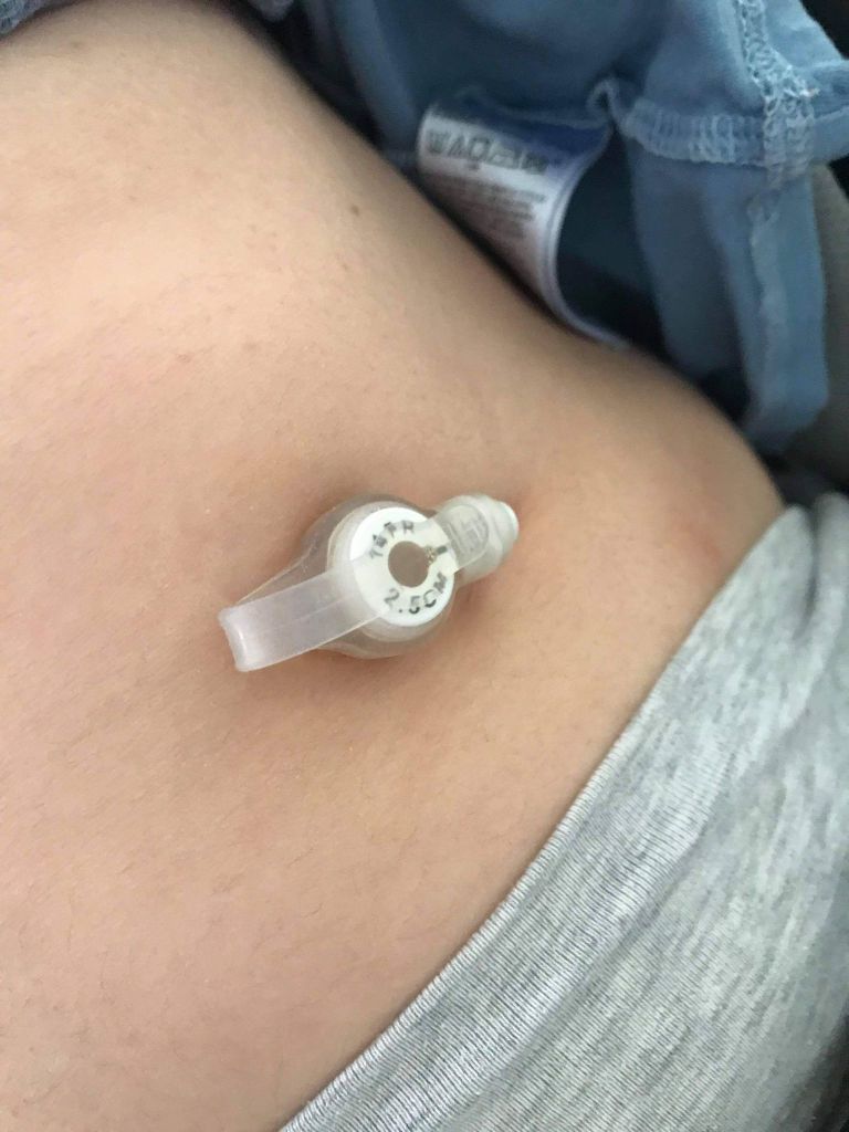 Around my birthday, my Mom changes my feeding tube. I lean my wheelchair back and I make my dad hold my hand because changing the feeding tube is kinda uncomfortable and I don’t enjoy it very much! Good thing it’s only two times a year or unless it falls out.