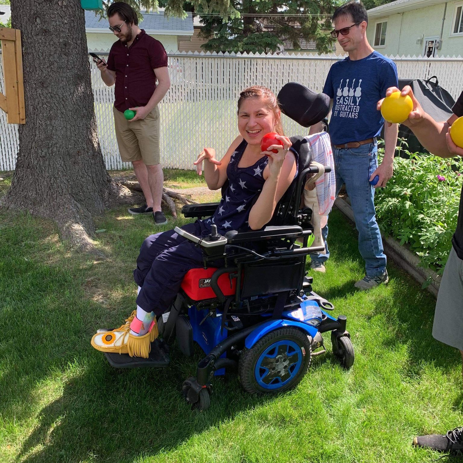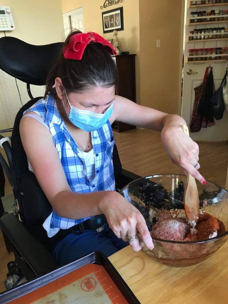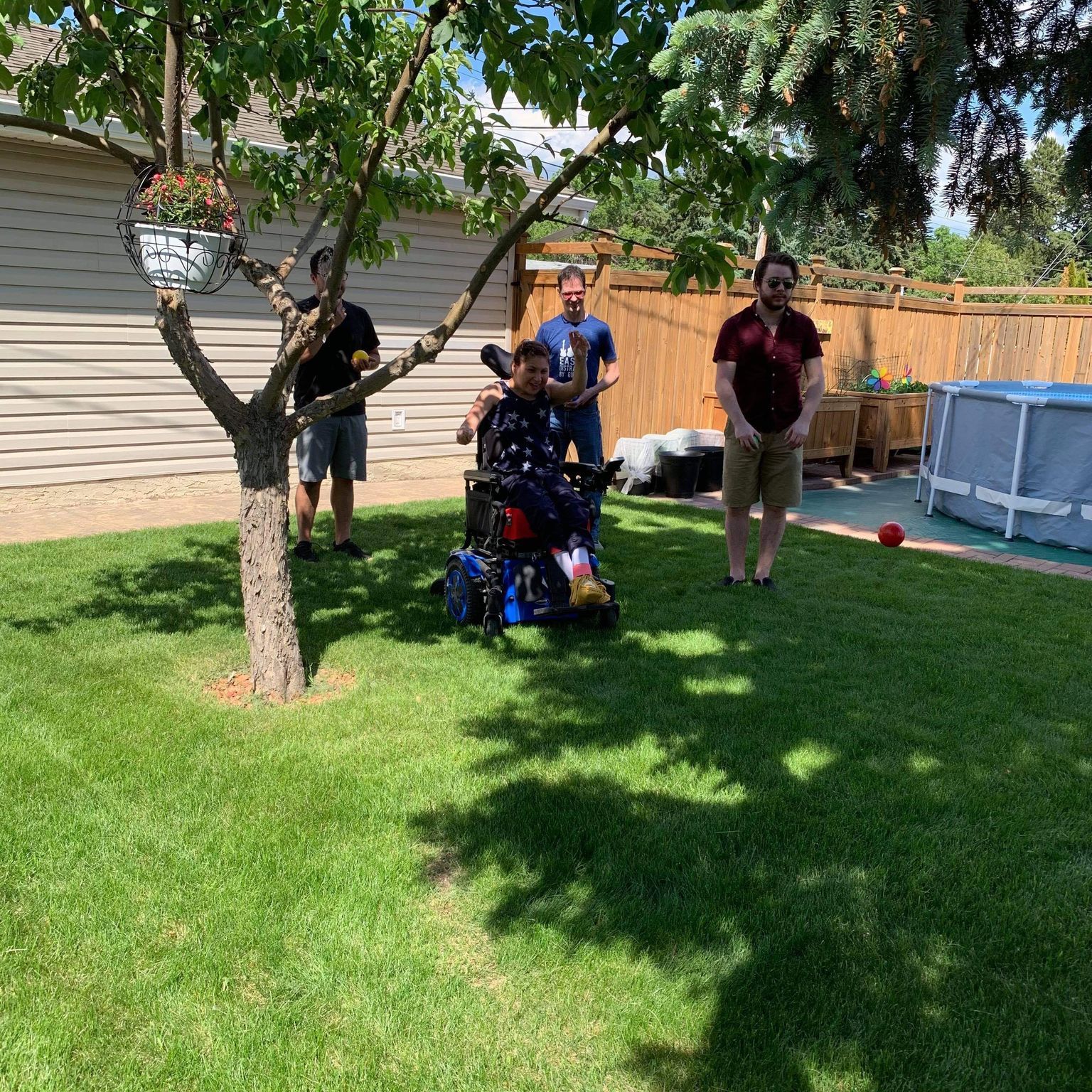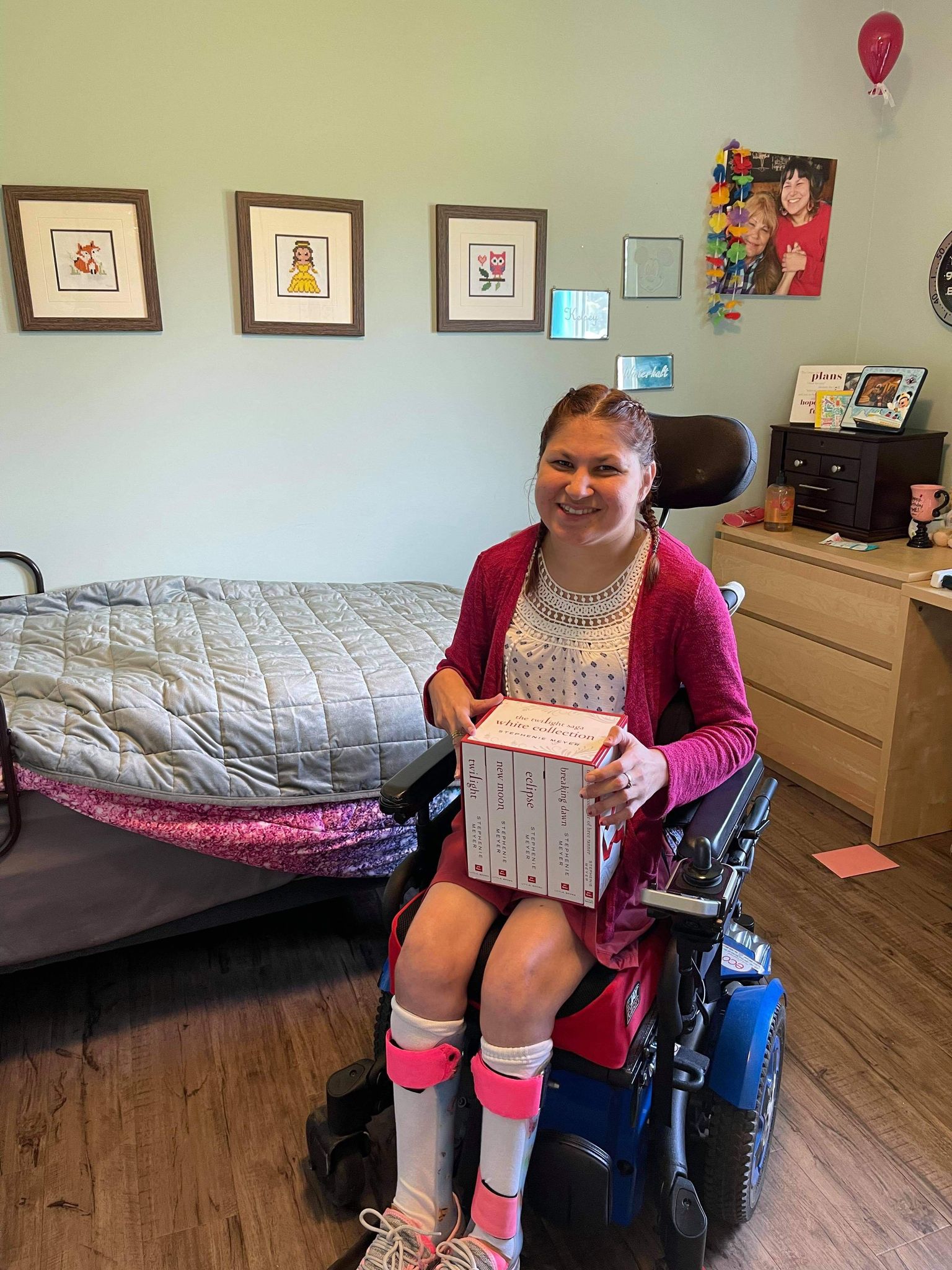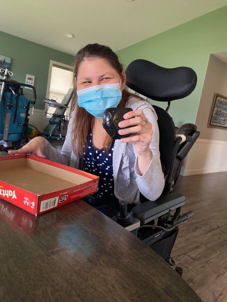 Around my birthday, my Mom changes my feeding tube. I lean my wheelchair back and I make my dad hold my hand because changing the feeding tube is kinda uncomfortable and I don’t enjoy it very much! Good thing it’s only two times a year or unless it falls out.