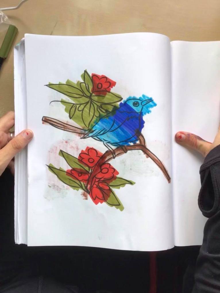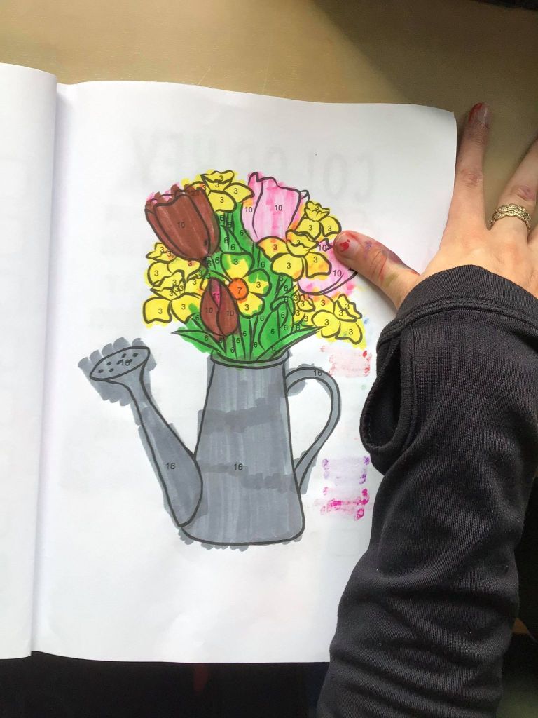 We painted bird houses and we gave them to our secret senior! I finished my colouring book in four days. It had 30 colour by number and 30 colouring pages!