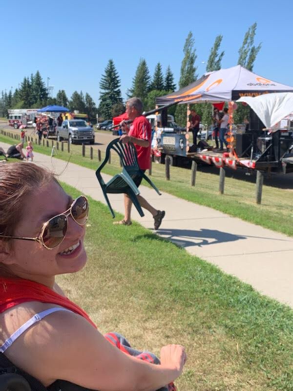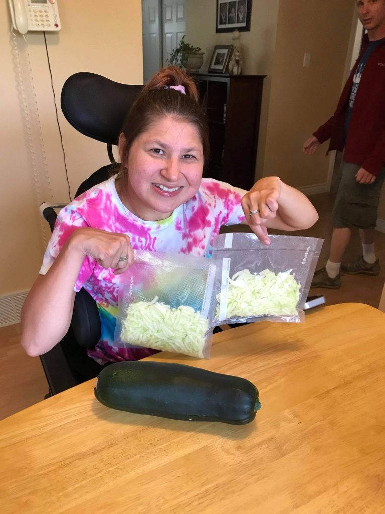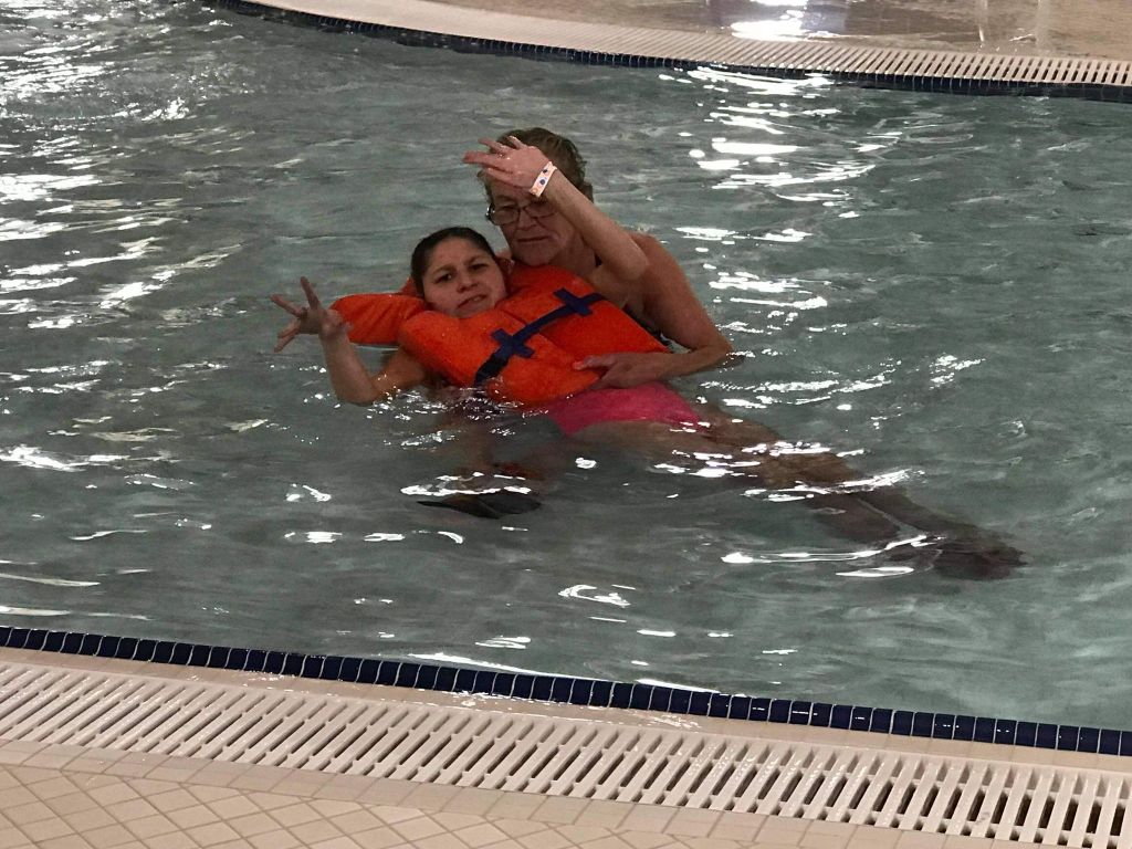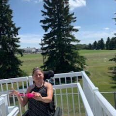 Donna: At home I had lots of support. A physiotherapist visited me on Monday after a teary phone call when I told her I was sure my left leg was now about 6 inches longer than my right – a normal reaction I was told. Bob was very good about helping me with my exercises and when friends came to visit they became my coaches. I used a walker and then graduated to a cane. I had a raised toilet seat and for extra safety had handrails in the shower. I was diligent about doing my exercises and after the staples were removed friends took me swimming to North Battleford twice a week. I was grateful for this as I couldn’t drive for 6 weeks after my surgery. I found the water therapy to be very beneficial, noticing an increased range of motion immediately. At first I just walked in the lazy river using a paddle board for support, but then graduated to an aqua bike, and then swimming.