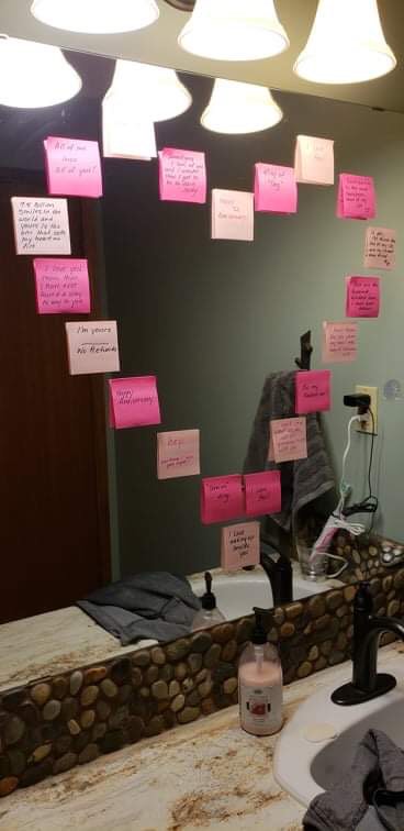 Tammy- Valentine’s Day is very special for us. We were married on that day. This year it will be 35 years!!🥳🎉🎈🥳. Greg often buys me flowers a nice card and we do something special for dinner. One Valentine I surprised him with post-it notes on the mirror….as far as my love language. I enjoy all 5! I love when Greg rubs my back when he comes up beside me and gives me a kiss before he leaves for work. He buys the most amazing gifts. One year I got gold(earrings), frankincense, and myrrh like the Wiseman brought Jesus. I like words of affirmation in his beautifully written cards. I enjoy when he helps with laundry, cooking, dishes, and house cleaning, and I love spending time together playing a game or doing devotions and praying together.