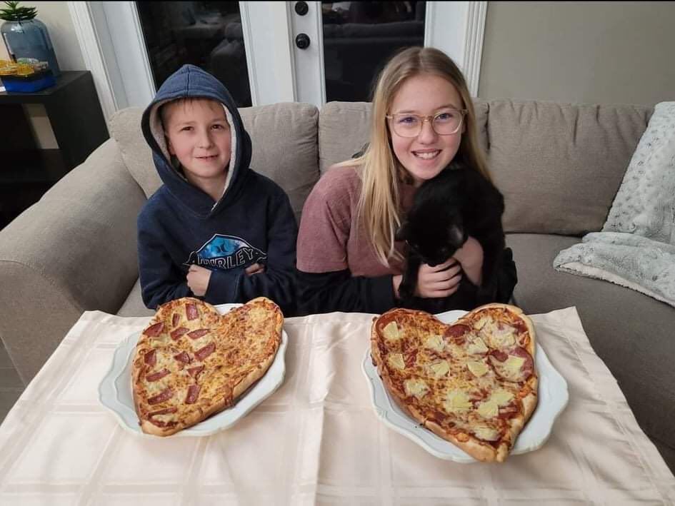 Nicole – As a family for Valentine’s Day, we make homemade heart-shaped pizzas with the kids. Kevin and I go out on a date sometime on the weekend. Nicole’s love language is a bit of everything. But mostly physical touch and words of affirmation. Kevin’s love language is words of affirmation.