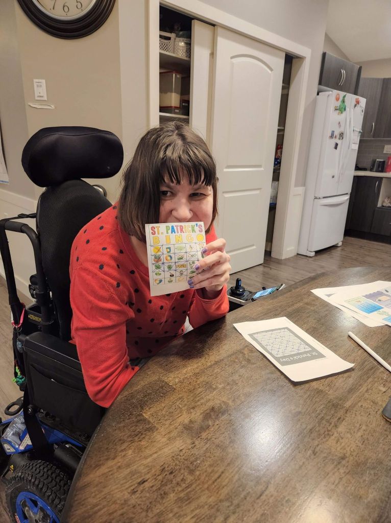 We played St. Patrick’s Day bingo on a Friday evening with Rose Club and I got four corners.