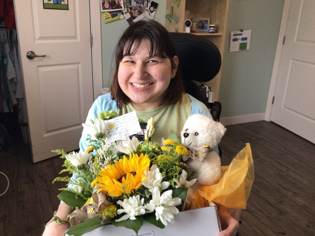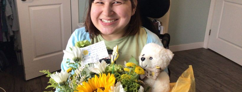 My BFF, Teresa sent me some sunflowers and other daisies with a bee wooden decoration and a gold sign saying get well soon. She wrote me a note saying a prayer for me to get back to my normal self so I can do the activities that I enjoy.  The Flowers came with a little teddy bear!  It was a wonderful special surprise for me, and I’m thankful that I had her as my grade one teacher and we had stayed friends since I was six years old. I’m thankful to have her in my life!
