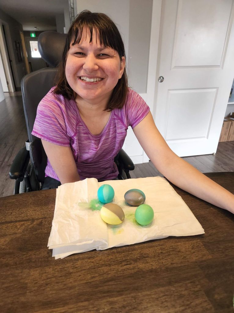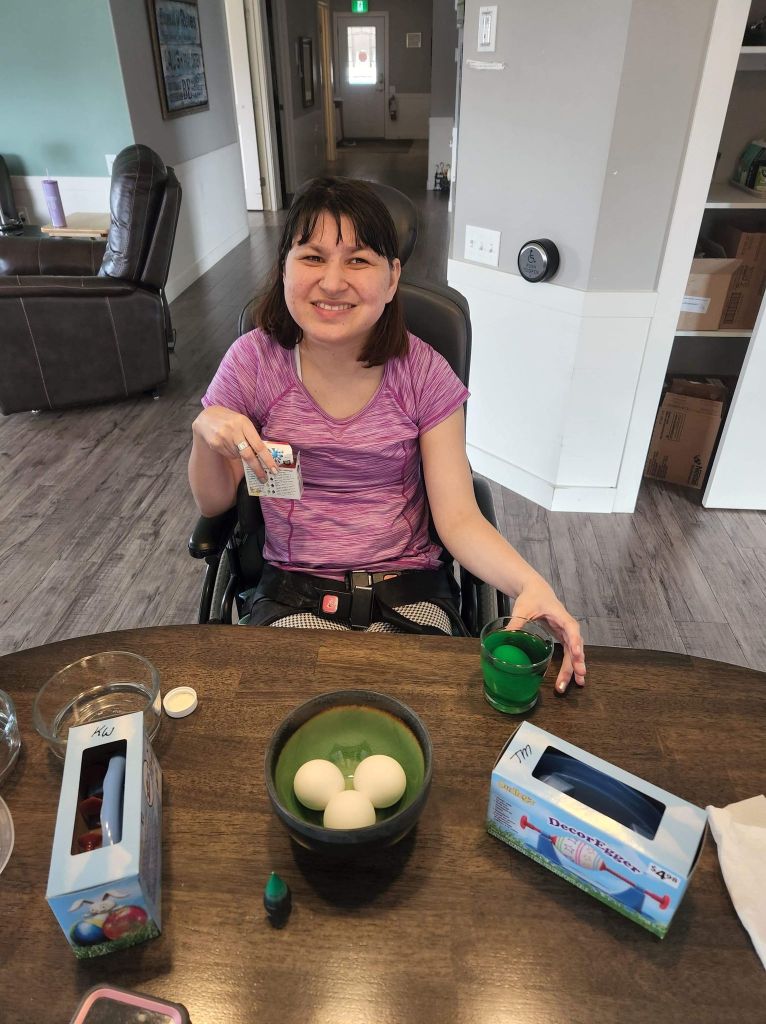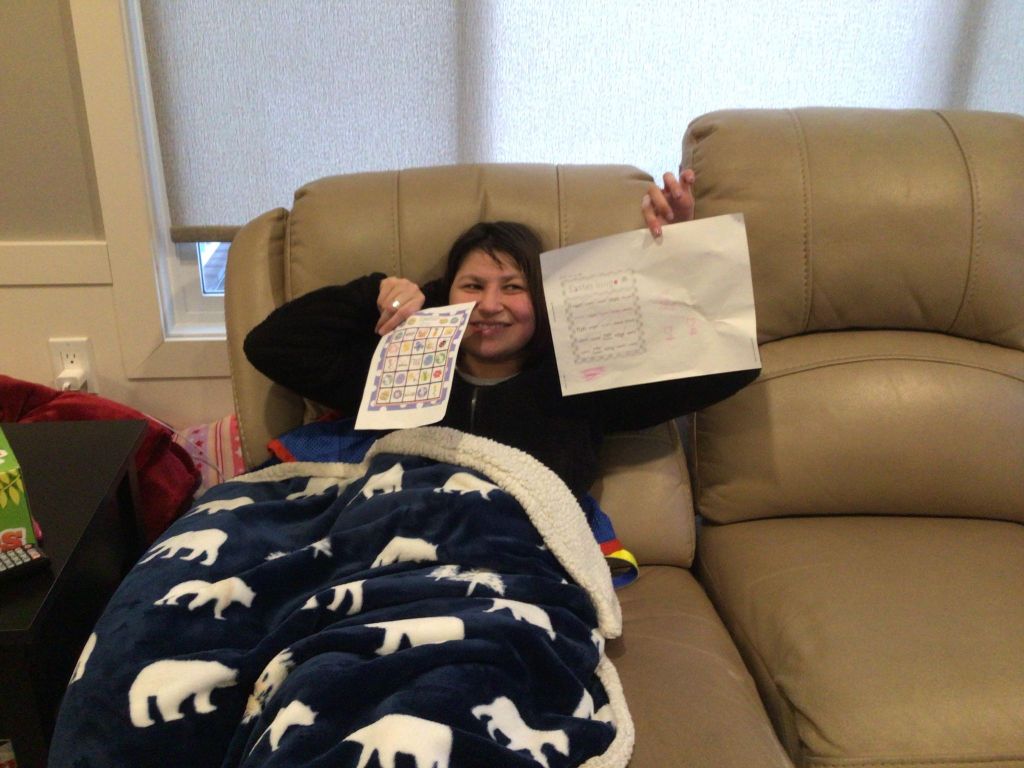 Unfortunately, I have a feeling that I got covid from the bowling alley.  On Saturday night my staff noticed that I wasn’t feeling well, but I didn’t really realize until 6 am on Sunday morning, I started feeling unwell. My staff Karli tested me for covid and it took 3 minutes to turn the test positive for covid.   I was isolated for ten days in my room.  It started with a headache, stuffed up nose and a cough. By Monday evening my chest was hurting me too.  The 3rd day I woke up and I couldn’t breathe very easily and I coughed so hard that I threw up in my bed.  Mom took me to the hospital on Monday evening and we found out I had pneumonia covid and also a nurse noticed that I had a burn on my back too.  By Thursday evening I was throwing up my supper, so my staff Kelsey phoned Healthlink and they told her to go to your family doctor but my doctor was away so we went back to the ER for more medication.  I did lots of word searches and took some naps during the time that I was in my room!   I tested negative after 10 days in my room. I still had a cough, sore throat and sore chest for a few days, but I think it’s because of the pneumonia!  I missed some of the rose club activities, there was a baking muffins night and there was a scavenger hunt with rose club end of April but I was just getting over the pneumonia!  I had to reschedule school presentations. I missed Easter with my family and Grandpa Ray because I was sick during the Easter weekend.  Once I got over the covid and pneumonia, we found out that I had liquid in my ear, and I got ear drops for 7 days!