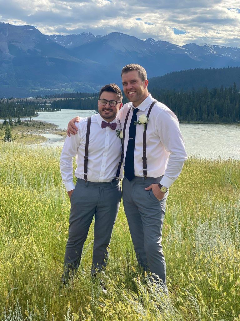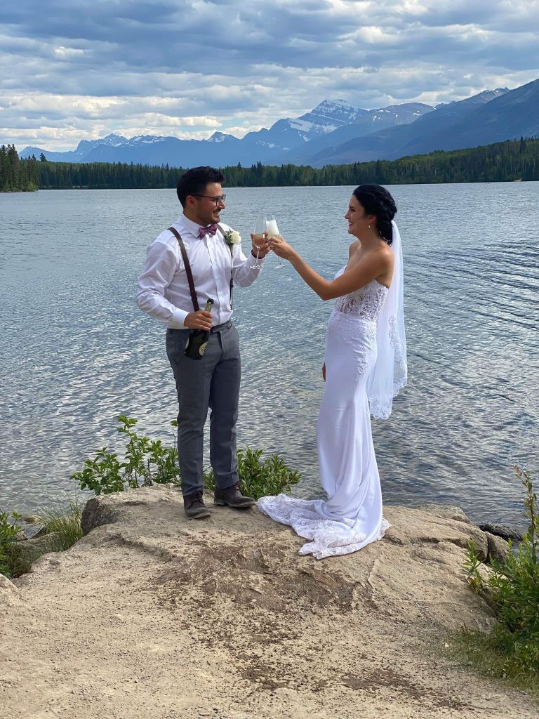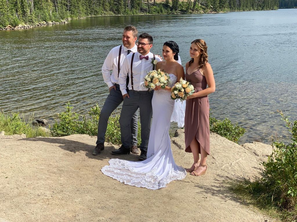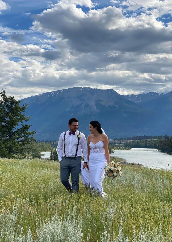 On Friday, my brother Joel and his fiancé Ashley got married in the mountains, Jasper Alberta! It was just the parents who were invited and the wedding party, then there was a wedding dance in August and it was in Saskatchewan.