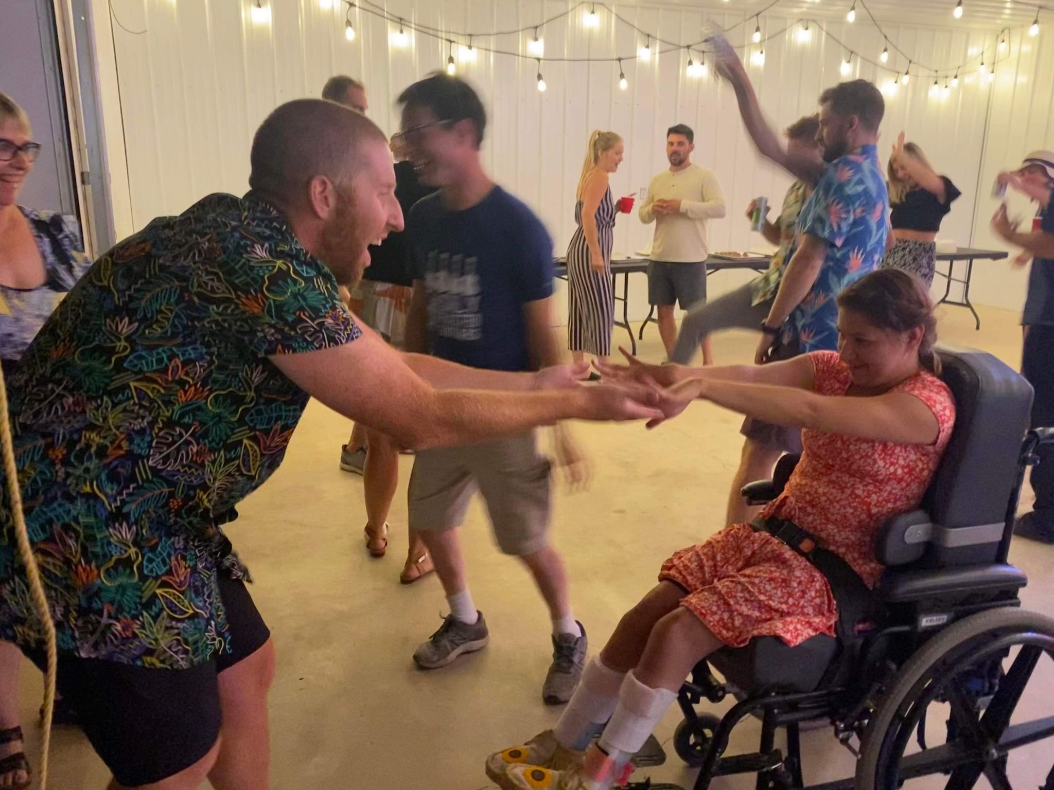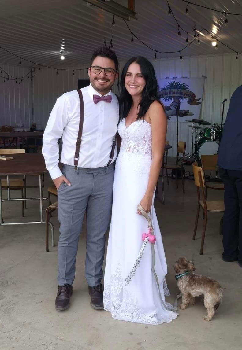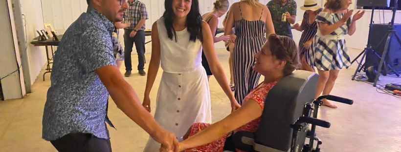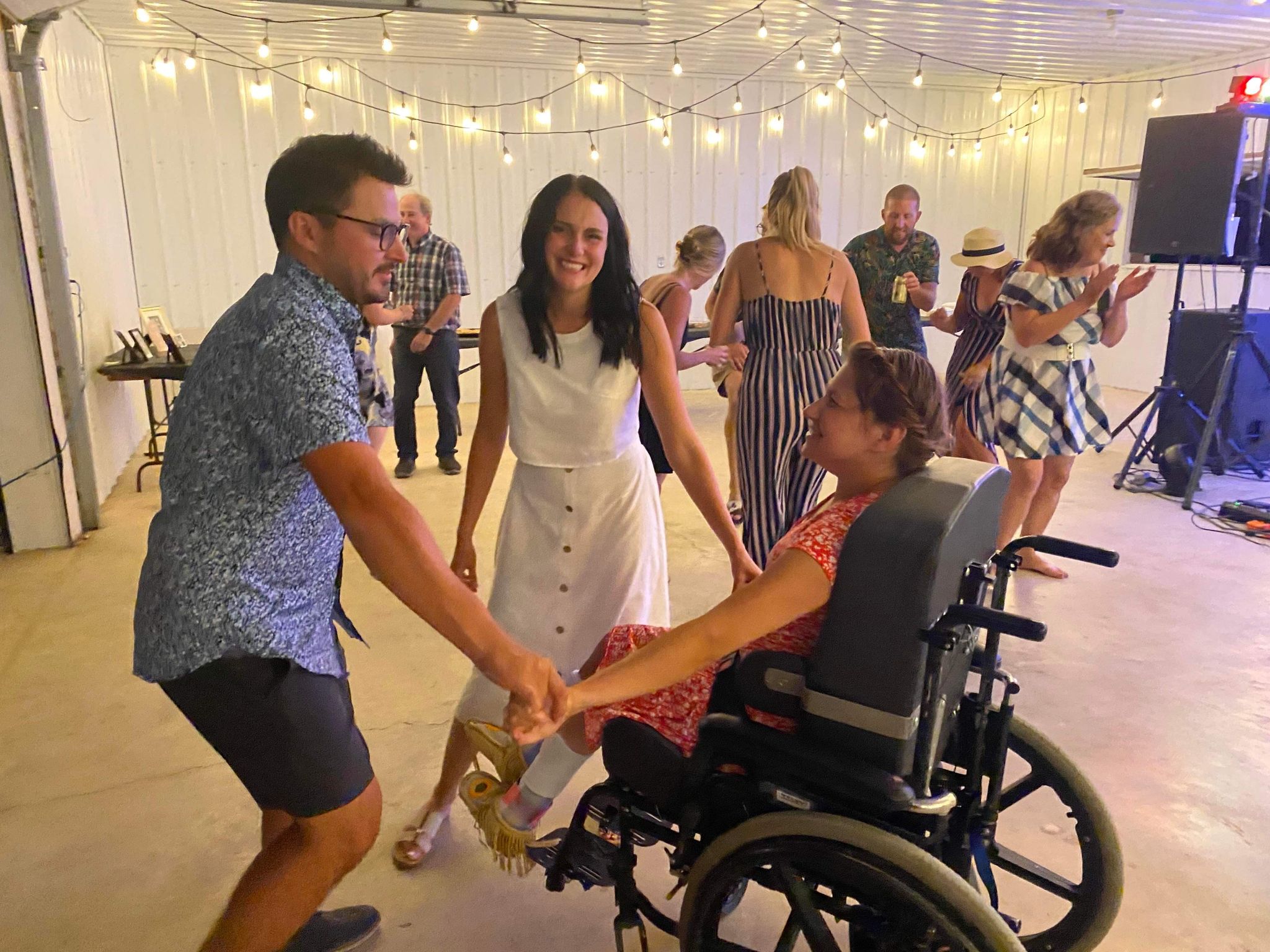 So we saw Ashley’s wedding dress which was beautiful! Joel looked handsome in his outfit. Joel wore a white shirt with suspenders. Then they changed into different clothes for the dance. Ashley wore a different white dress and Joel wore a blue dress shirt. They didn’t have a 1st dance, they did that in the mountains at their wedding. They had their puppy Coco for awhile at the dance. They started with speeches from the best man which was Joel’s best friend Joshua and the Maid of Honour was Ashley’s sister Kayla. Then they had supper. They had roast beef, beans and coleslaw. I think there was cornbread too. My mom made lots of squares for dessert. They had a table of pictures of people who had passed away and they made a photo album. We danced in the hall and I danced with most of Joel’s friends! His friends stood in a line and I got to pick who I wanted to dance with. I enjoy dancing while I was in my manual wheelchair. I got to be pushed around and it’s easier to dance. It’s was an awesome evening to celebrate the happy couple. It was super duper fun and I had a blast at the wedding dance. All the best to the newlywed couple Joel and Ashley! I’m so happy to actually have a sister-in-law! An huge congratulations to them and an huge Welcome to our family Ashley!