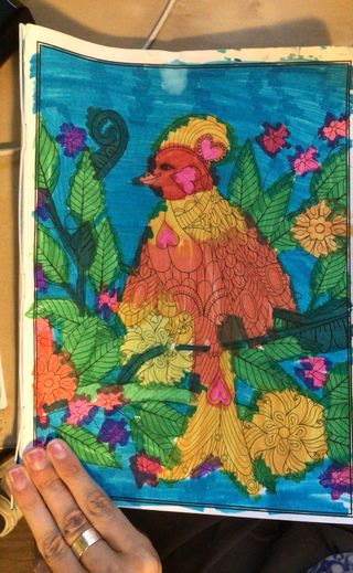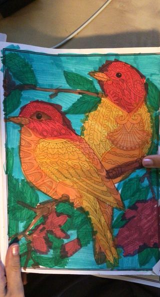 My Auntie Gail gave me a bird and flower colouring book for my birthday, I think it took me a whole week, and a weekend and few days to get it finished!