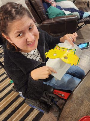 We had craft night with Rose Club on Friday night on zoom. We got a bag with a stencil of a cat, different kinds of paper, paints, strings to put our mask on our heads and some glue sticks that were sparkles. We hand drew the stencil on yellow or blue foam and then we got to decorate our mask! I used some stickers and some art and craft glue sticks that were golden sparkles. We let our masks dry overnight, and on Saturday afternoon Anna putted string through the holes on my kitty mask but unfortunately I couldn’t see very well. It was fun to make the mask craft with Rose Club! I did some colouring of a girl, some buildings, a school bus and an fire hydrant! We worked on a frog cross stitch. I made a donation to clothing bins by superstore that were old Halloween costumes. Then, we dropped by Walmart and I bought a picture frame for my cross stitch frog and I got a night grown that I’m going to donate to the women’s shelter next week. I also donated five dollars to the school’s breakfast club at Walmart while I bought my stuff. On Saturday evening we watched the Witches on Netflix, it was a very freaky and very creepy movie. I would definitely recommend NOT to watch it with small children. Please. They might have nightmares and bad dreams.