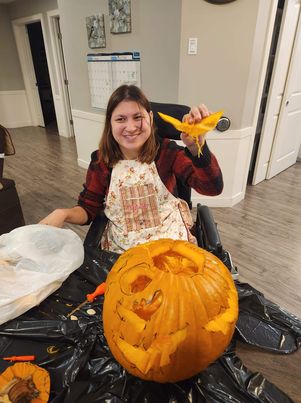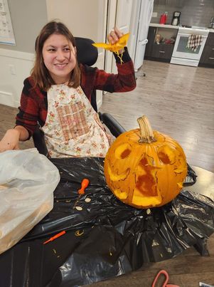 On Friday afternoon we decorated the inside of the house for Halloween. Then we watched the Witches movie the new version with the actor Ann Hathaway. It was like the old version. I would recommend small children should watch this movie with their parents. It was less creepy and less freaky than the other version of the Witches movie! On Friday evening we carved pumpkins with Rose Club on Zoom and we learned about Abuse Awareness from Levi! For my pumpkin I took the insides of the pumpkin out, I drew lots of bats, moons, and a lighthouse so I could cut them out, and I did something on every side of my pumpkin. It was really fun to carve pumpkins with Rose Club, learning about Abuse Awareness and getting into the Halloween sprit. 🎃