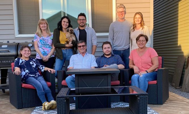 On Thanksgiving Sunday, we went to Edmonton to Joel and Ashley’s house. Ashley’s sister Kayla and her fiancé Garrett were there, my grandpa Ray and Sandy, my mom, me and my brother Luke. Unfortunately, my dad got a cough so he couldn’t make it. Joel smoked a turkey, and there were cranberries, sweet potatoes, salads and buns! My mom made orange cheese cake squares and apple pie for dessert, and Sandy brought a salad that she made. Everyone went outside and visited while Joel, Ashley and Kayla were getting dinner ready. After dinner we got a group picture on their backyard deck! It was great to see family and get together for the holiday weekend.