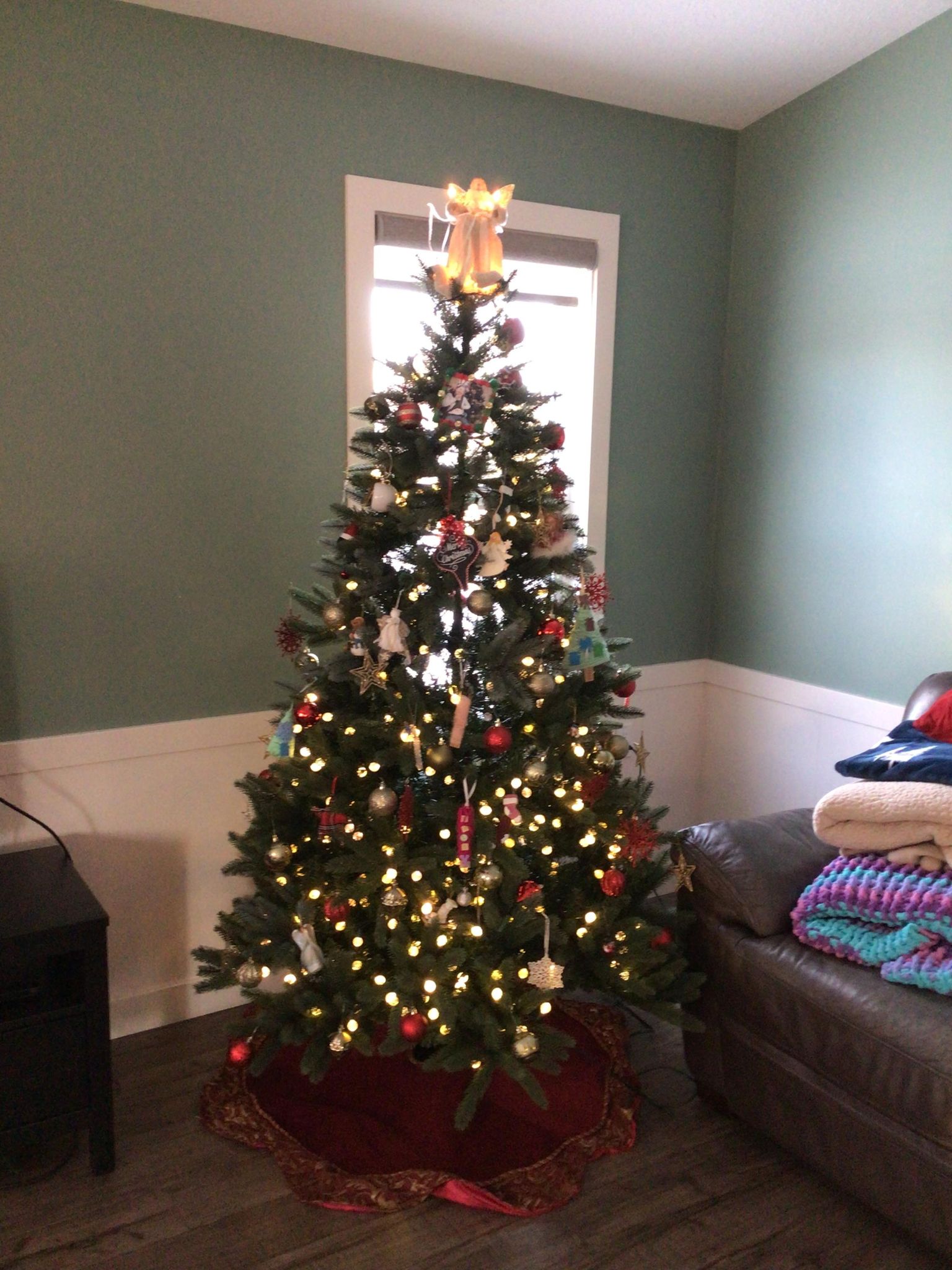 Saturday afternoon we decorated the inside of the house for Christmas. We put up some dollar store items like snow man and snow flakes on the windows. We put up the Christmas tree and decorated our Christmas tree!