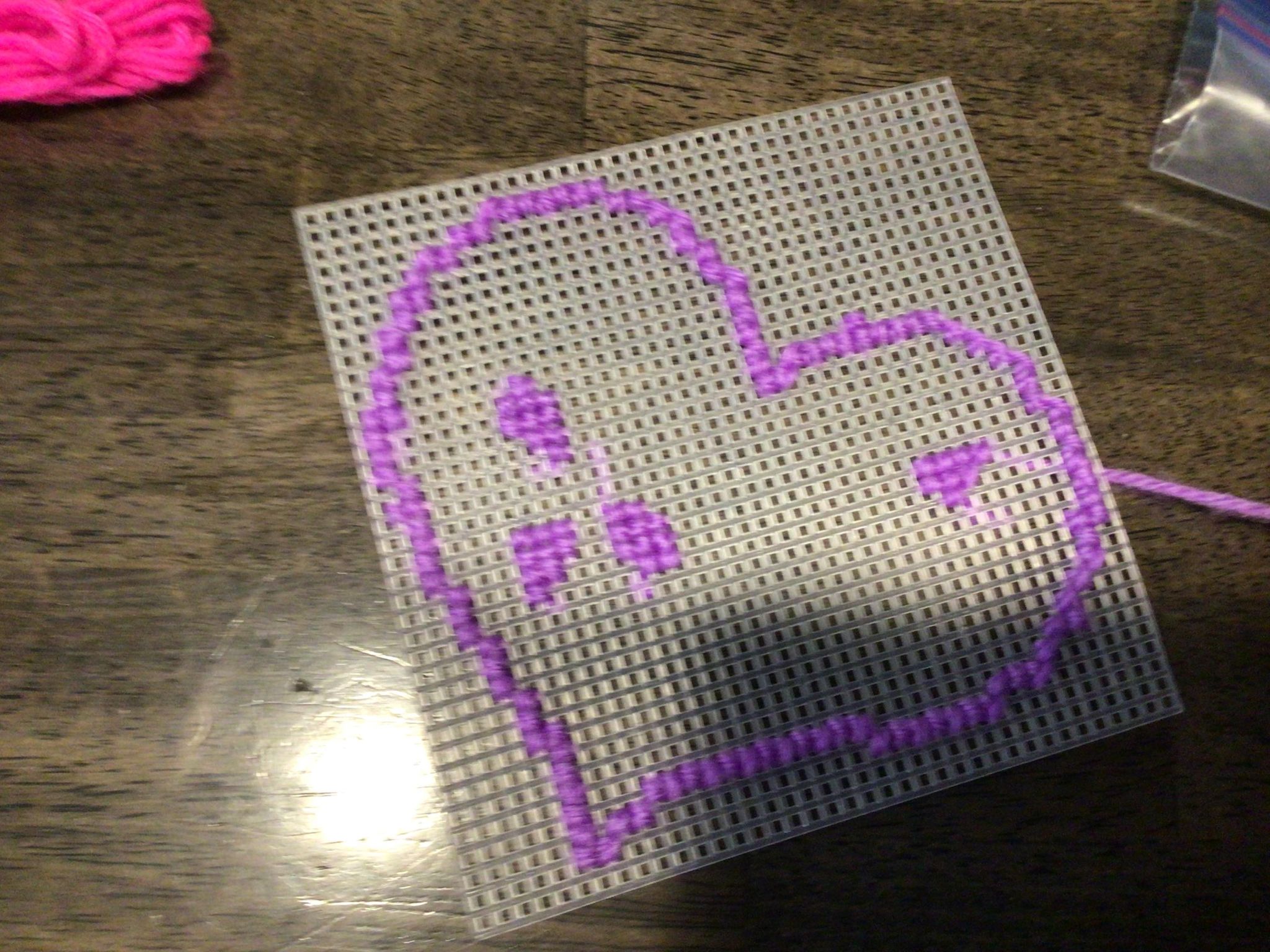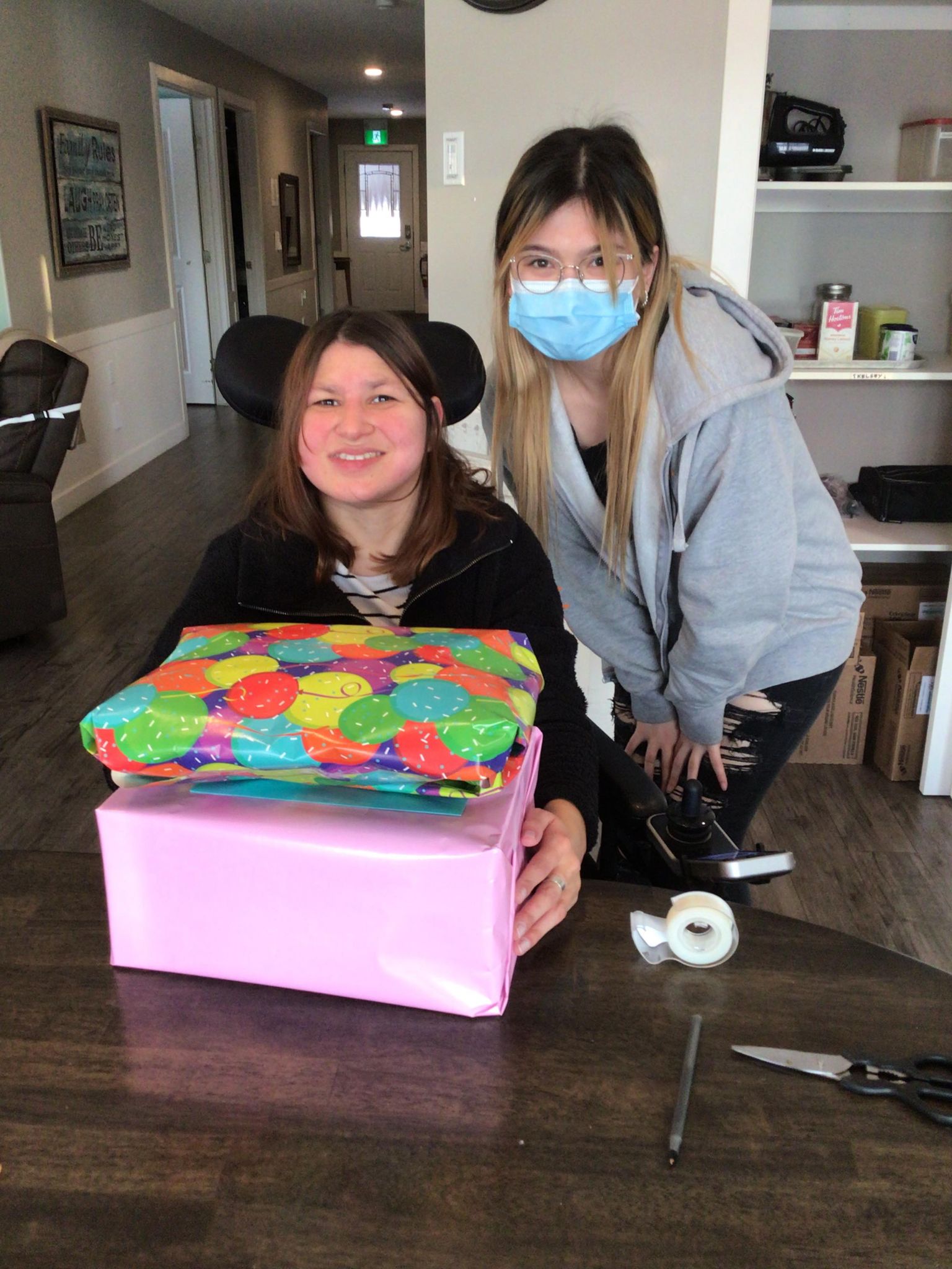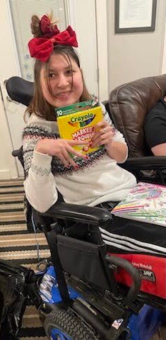 On Friday morning I went to the fire hall and shred the paper for the fire men. On Friday morning The Handivan driver Joanne said “The Handivan drivers really enjoyed their chocolates” from their Christmas present. They ate all the chocolates in a week. I noticed that Joanne decorated the bus for Christmas! On Friday afternoon I coloured a picture of a turtle with flowers and another picture of an octopus. I got to FaceTime my friend Kristen. I met her at CAFCL’s Kandu summer camp when she was a leader and I was eight years old. I got to meet and see her second baby boy Malcolm on Facebook messenger! It was a thirty-three-minute chat, and I enjoyed every minute of it. After FaceTime I coloured another picture of some fishes and blue water. On Friday evening we started on new cross stitch and we cross stitched a purple heart and we decided finally to pop Janelle’s birthday balloons! It was an awesome day!