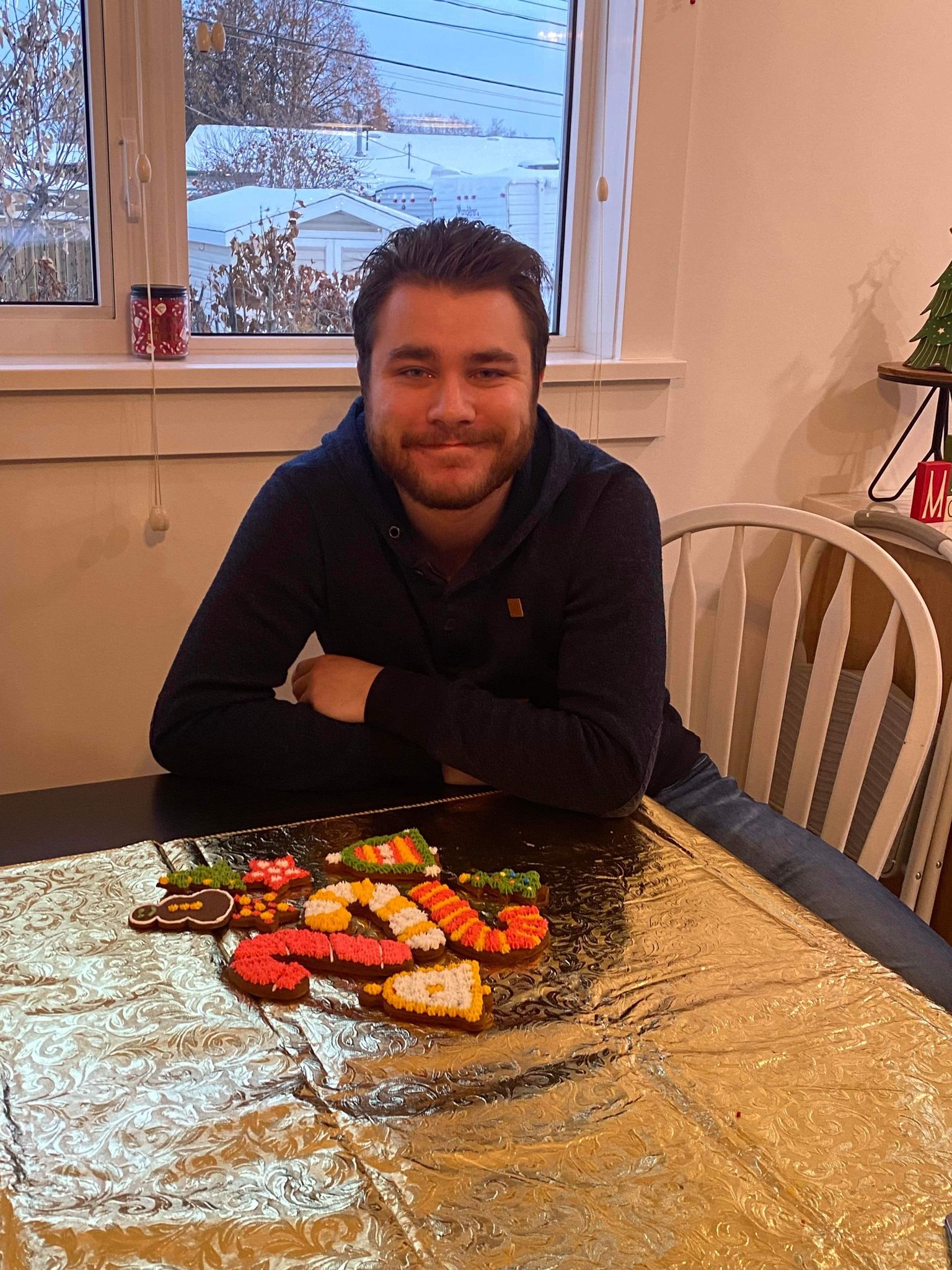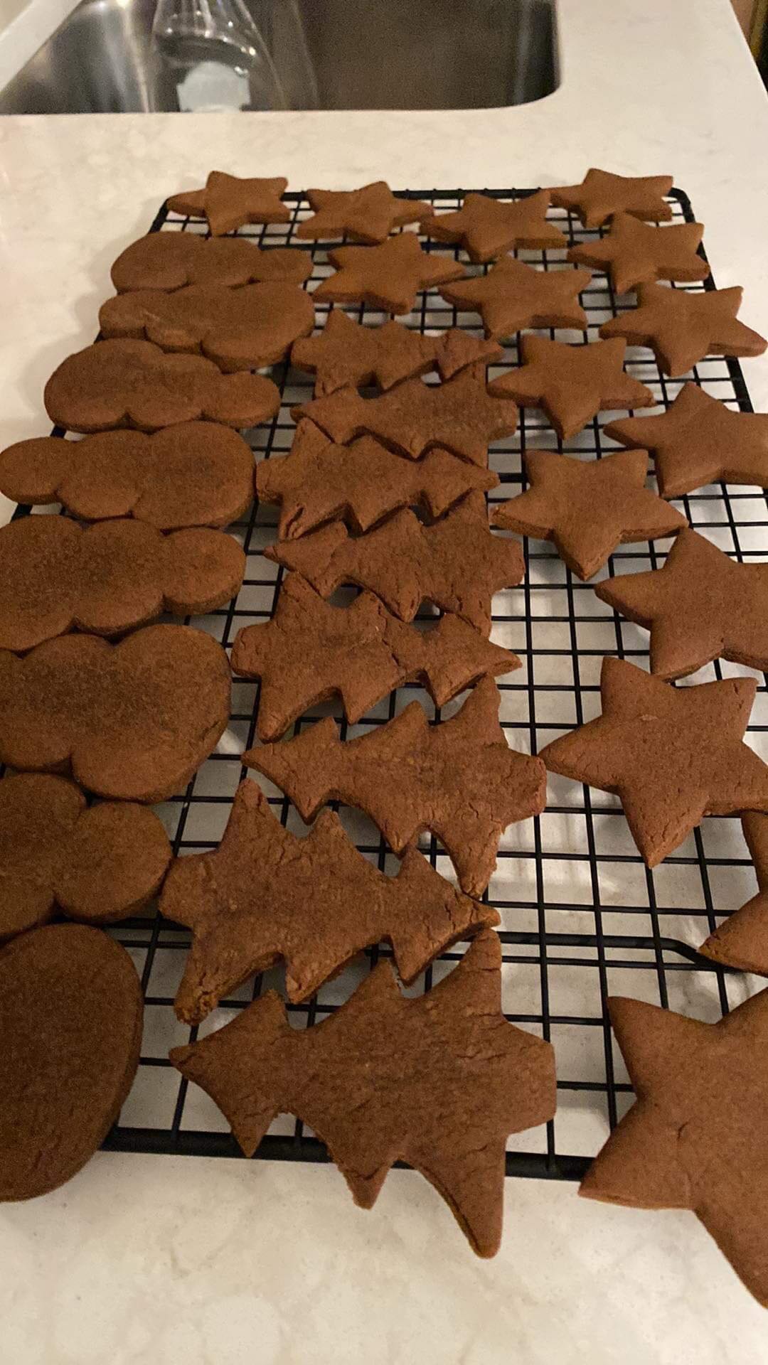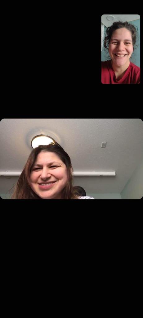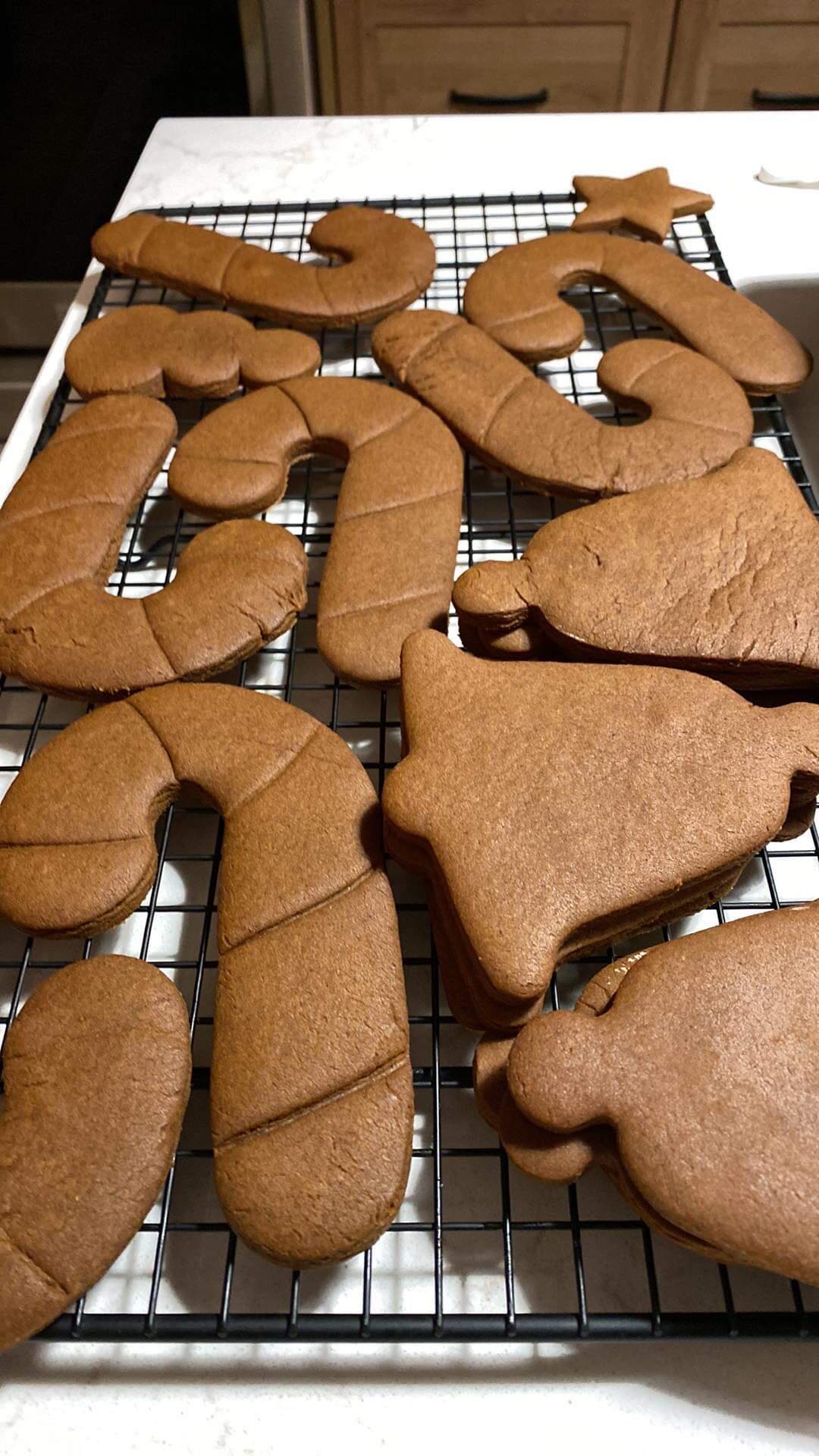 On Thursday afternoon mom and I FaceTimed. We made the dough for the gingersnap cookies and we made some chocolate chip and banana muffins. I got a word search book from Rose Club’s Christmas bingo prizes so I started doing word searches, and I watched KB and baby, and a few videos of Life As We Gomez. My roommates and I did our Christmas exchange from our roommates on Thursday evening. I got the same snow man set of bath bombs as last Christmas and I got them twice this year. I got new fuzzy socks, cross stitch and colouring books and markers, and purple hair dye! Everyone seems happy with their Christmas presents! My mom showed me the cookies baked out of the oven. On Christmas Eve I did some colouring, cross stitch, packing for Christmas .