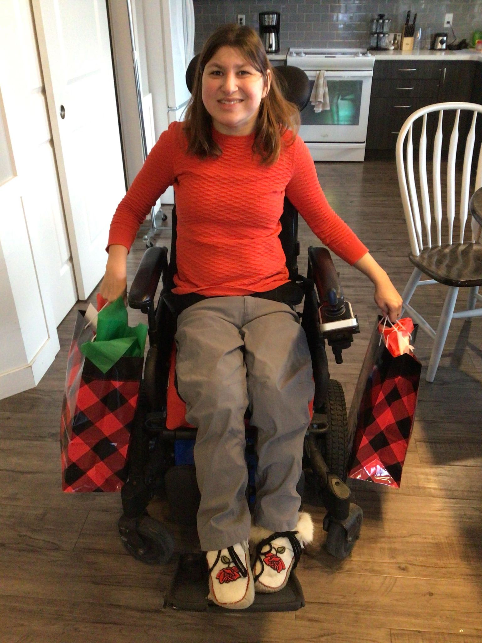 Kelsey showed me that her baby girl Avery is fitting into the moccasins that my mom made for her! They fit her perfectly and she’s super cute in them.