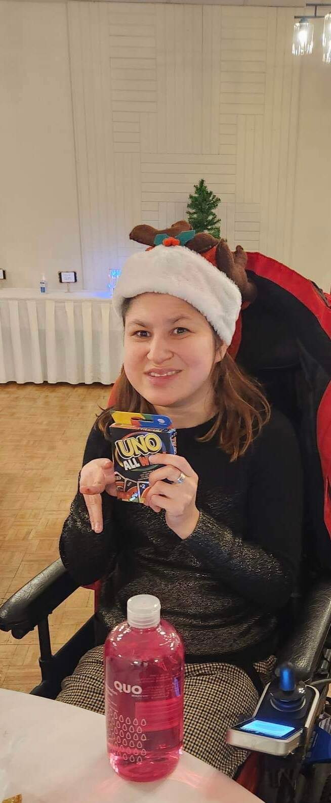 On Friday evening was the Rose Club Christmas party at the Norsemen inn. There was a dinner, delicious cherry cheesecake and chocolate pudding with whip cream on top. There was a Christmas play and of course a Christmas gift exchange. There were also door prizes. For my Christmas gift I got strawberry flavoured bubble bath and UNO cards. The play was called Mr. Brown’s Christmas Carol and it was very good. They made a cut-out of an ambulance for the play. There was a dance at the end of the evening! After the Christmas party you could take your centerpieces home that you made for Christmas party. It was amazing to have a Christmas party in person after three years of covid! I had a blast by getting into the spirit, seeing my friends and meeting new people! Merry Christmas!