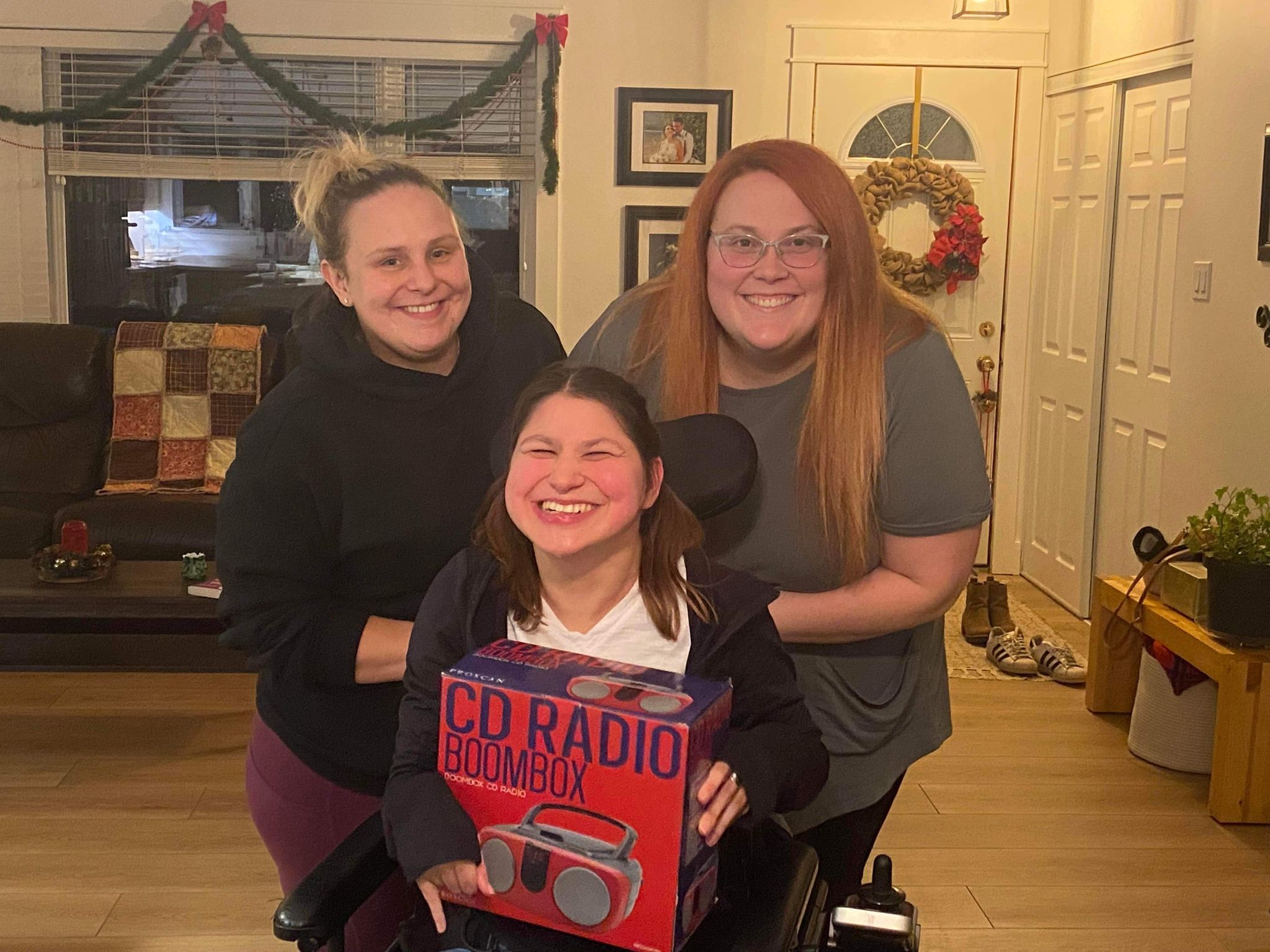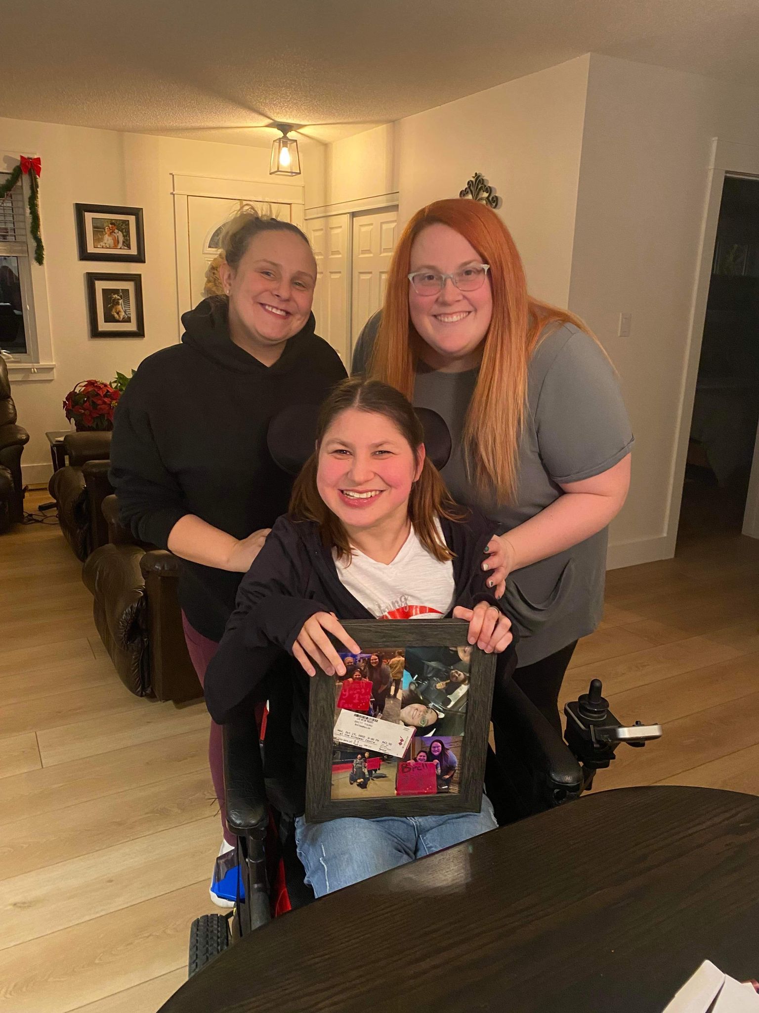 On Thursday morning I dropped off my food bank items at the CAFCL office. In the afternoon My mom and I made short bread cookies and did some last-minute Christmas shopping. On Thursday Evening Kelsey and Melissa came over to drop off some Christmas presents! I got a new red Boom Box that has a radio in it as well. Brett young’s CD ” weekends look a bit different these days ” and Kelsey had made a picture frame of Brett young’s concert ticket and pictures from the concert. We had a two hour visit with Kelsey and Melissa. Thanks so much for the visit and the Christmas presents Melissa and Kelsey, and the Christmas card Kelsey and her family! You’re the best people in my life and the funniest and crazy girlfriends ever!