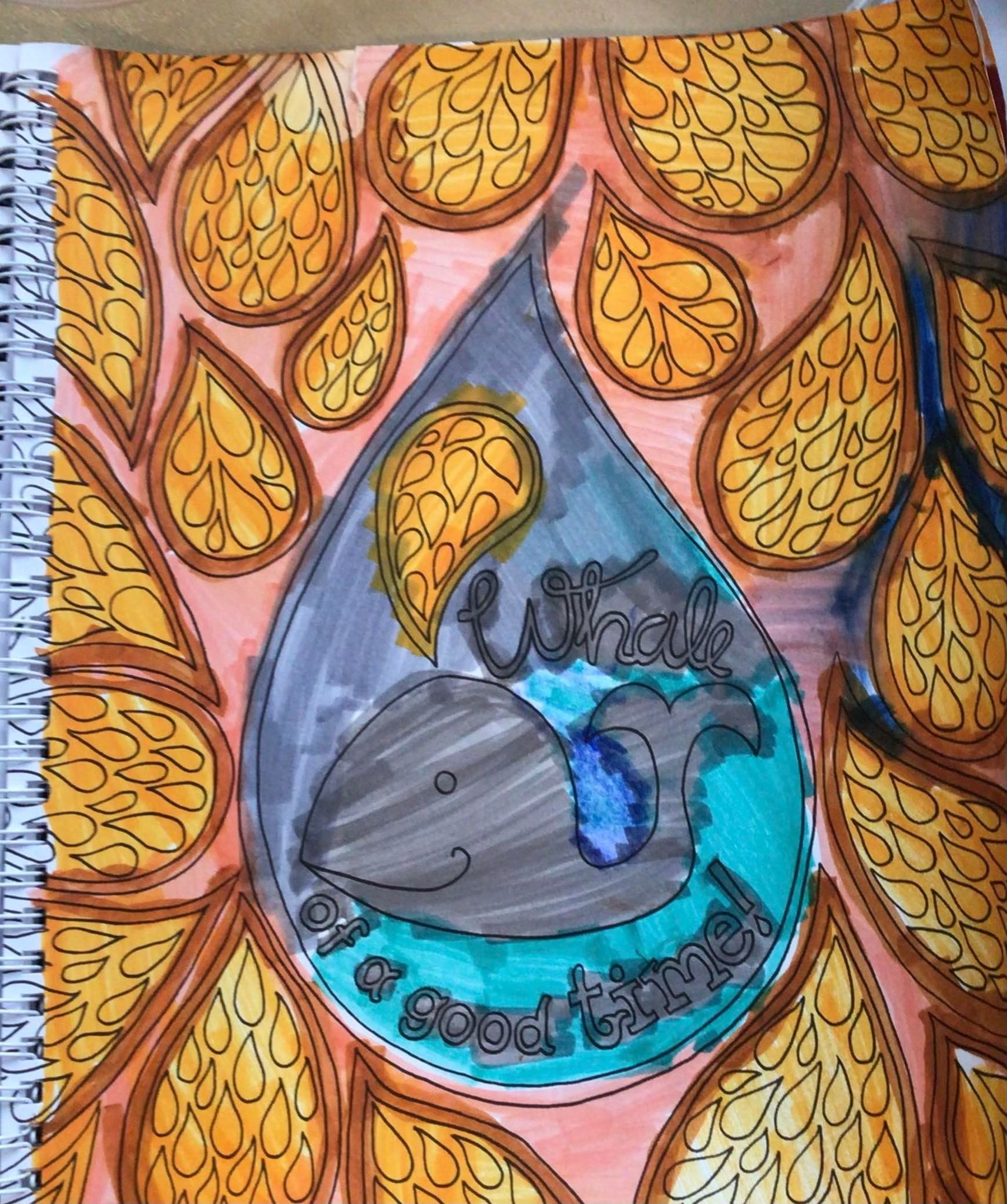 On Friday morning I went to the fire hall and shred the paper for the firemen. Then I had an appointment with the O.T. Then my mom put away some of the rest of the summer clothes and summer PJS and put out my winter PJS. She also got my new Boom Box set up. I had some sweaters that needed to be fixed so she took them home with her. On Friday afternoon I coloured some balls different colours and the background a golden colour! I coloured an ocean that I made it look like the water was red, pink and purple colours. I glues I ran out of blue markers. It had an octopus and some fishes in the water. I coloured a whale picture… it says’ whale of a good time’. I did laundry between doing colouring.