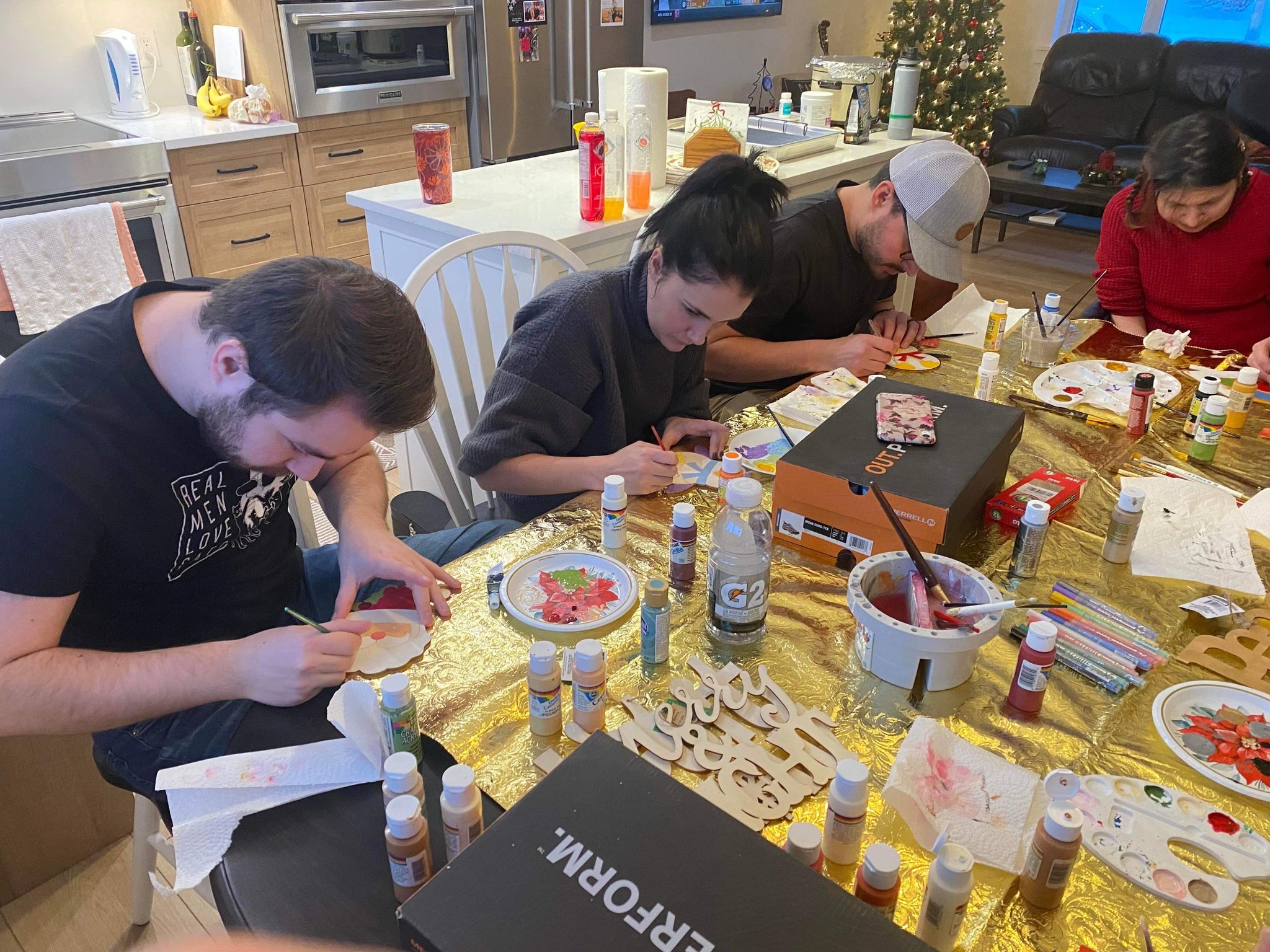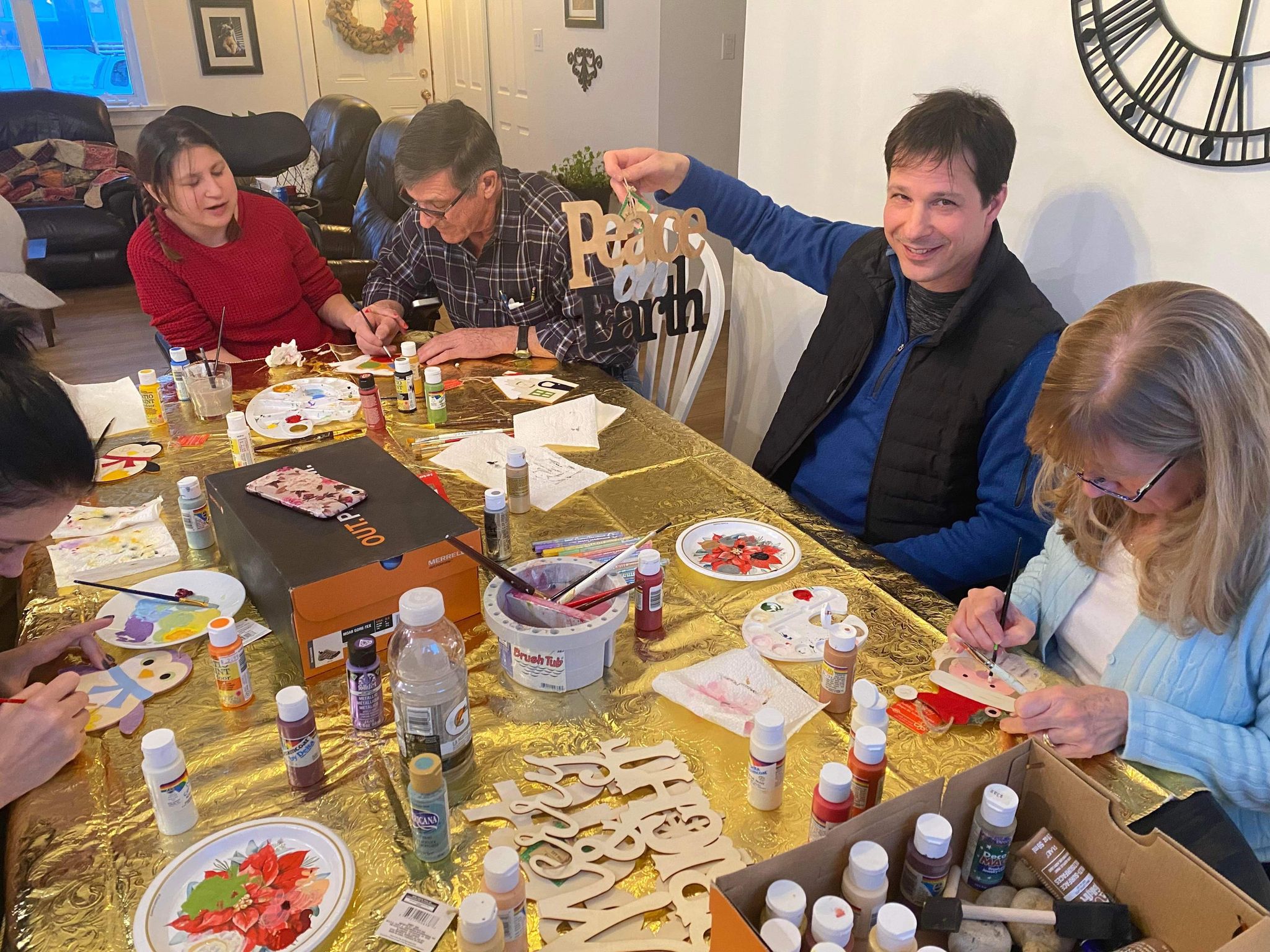 On Sunday afternoon we celebrated our dad’s birthday as a family. We painted wooden Christmas Ornaments which were Santa, gingerbread houses, owls and one said peace on earth. Then we had my dad’s birthday dinner homemade chicken strips, homemade Mac, and cheese. With vegetables and dip. We had Black Forest cake with cherries and whipped cream for dessert. Happy birthday dad! Love you so much.