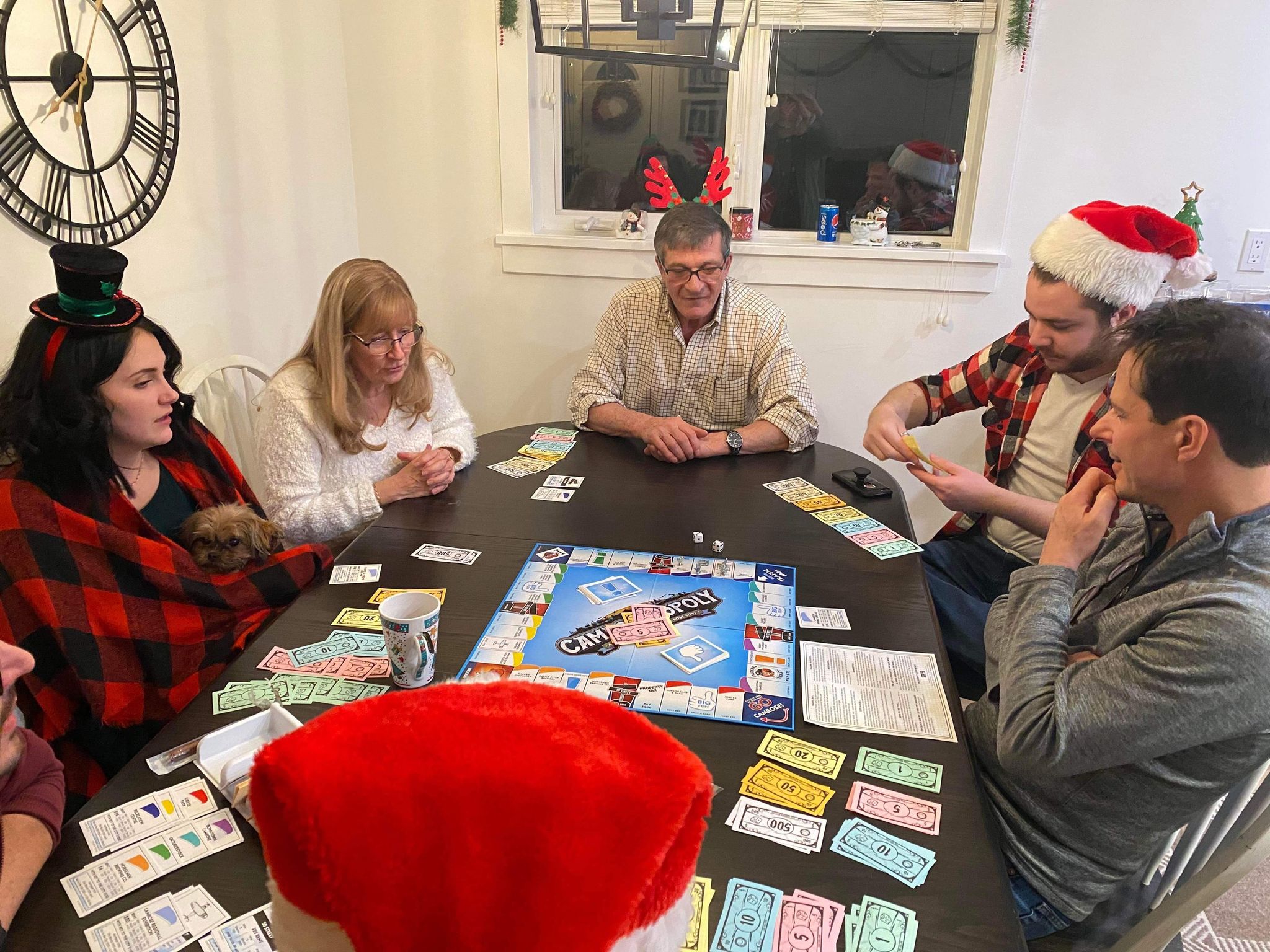 On Christmas Eve I went to mom and dads. I played Martian Dice with Ashley, Joel, Luke and mom & dad. Once grandpa and Sandy came, we played the Christmas ball! We had baked spaghetti, garlic bread and Caesar salad for supper. After supper we opened Christmas presents!! I got many sweaters, markers and a case, colouring books, a notebook and a butterfly day planner, Loom for knitting, cross stitches, games of Shut the box & Camrose Monopoly. My friend Mary and her family got me a sweater, toque and mitts, and jewelry. After we opened our presents, we played Camrose Monopoly. Joel and I won!