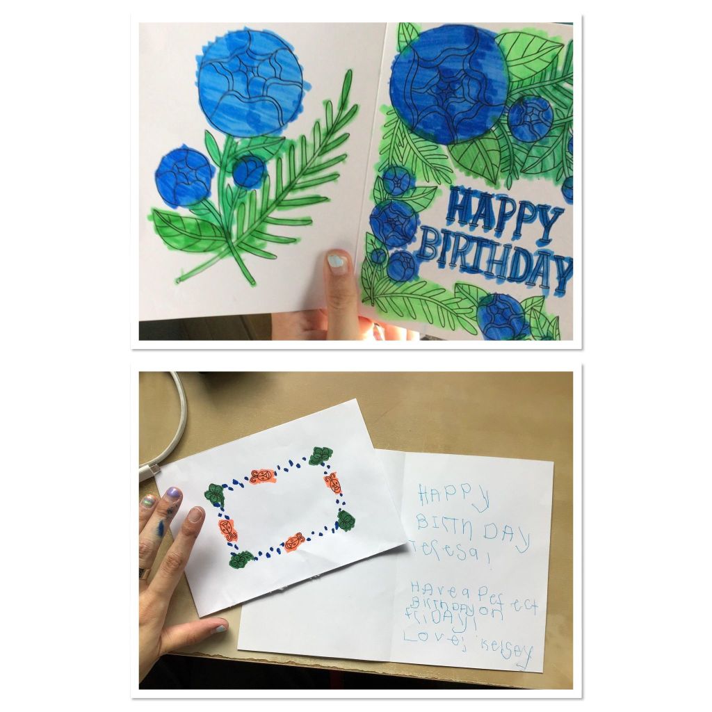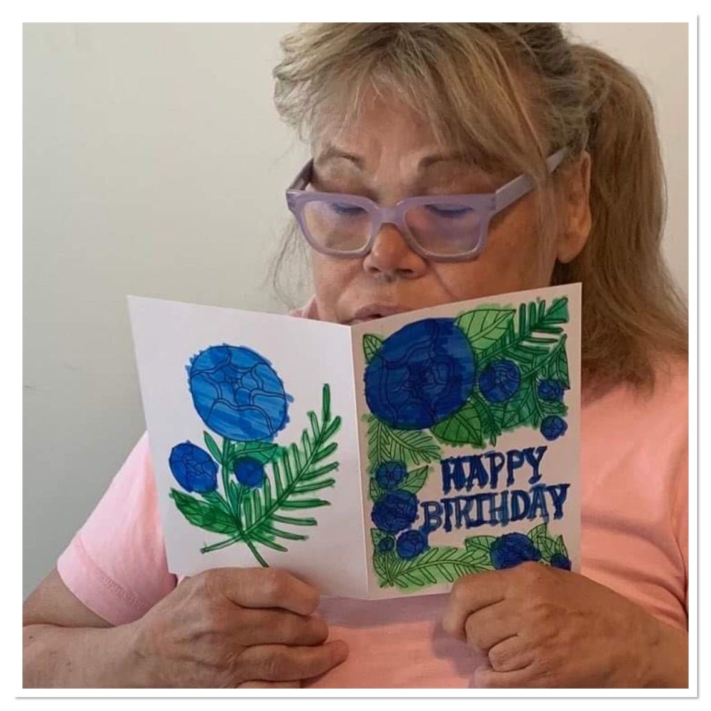 On Friday morning My Best Friend Forever Teresa sent a picture of herself reading her birthday card, she looked So smart in her glasses studying her birthday card she is still a teacher at heart. She loved her birthday flowers and her birthday card from me. It put a smile in her heart! She said the only birthday presents she got was her birthday flowers from me and her birthday card that I coloured. It’s makes a person feel like she did something extra special for her friend for her birthday. On Friday evening we went neon bowling with Rose Club and had a blast! It’s extra fun when you’re glowing in the dark and there music playing in the background. My staff Anna was dancing on the side.