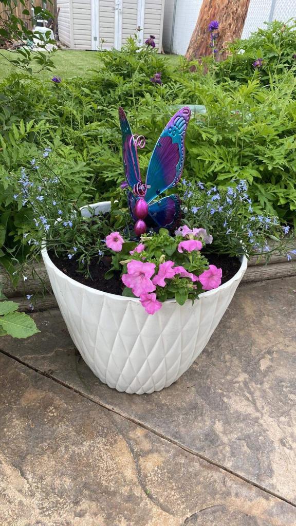 On Thursday morning my mom showed me My dahlia is really growing that I got my mom for Mother’s Day ! On Sunday afternoon my mom and I planted flowers and put my solar light which is a beautiful pink, purple and blue butterfly.