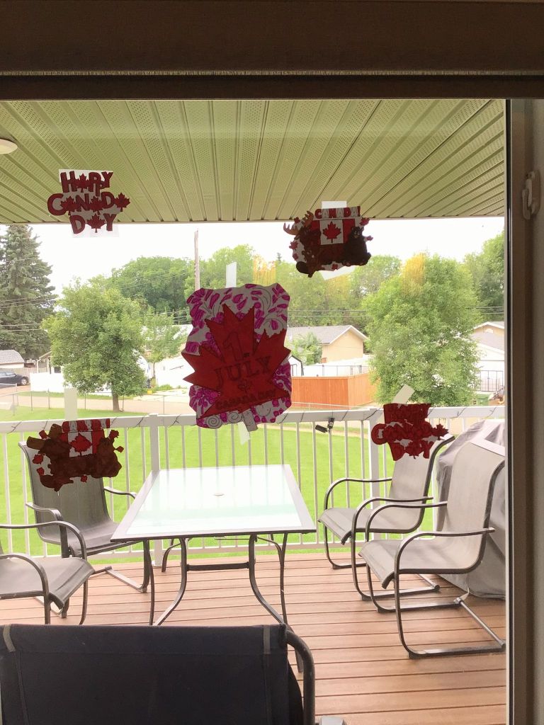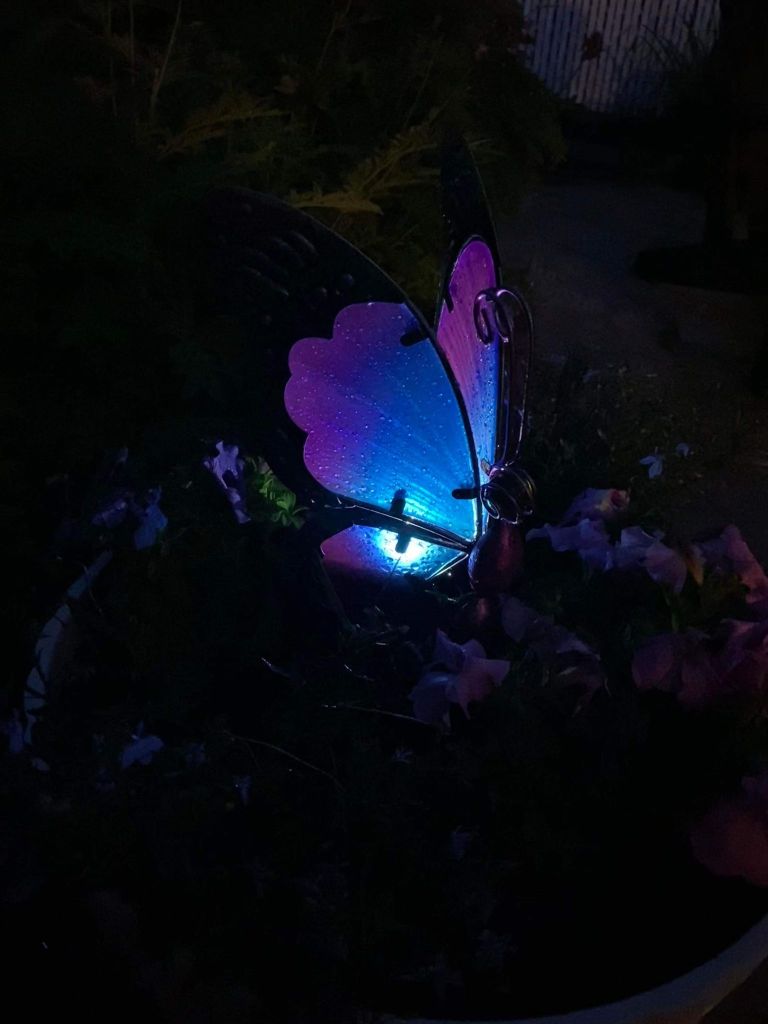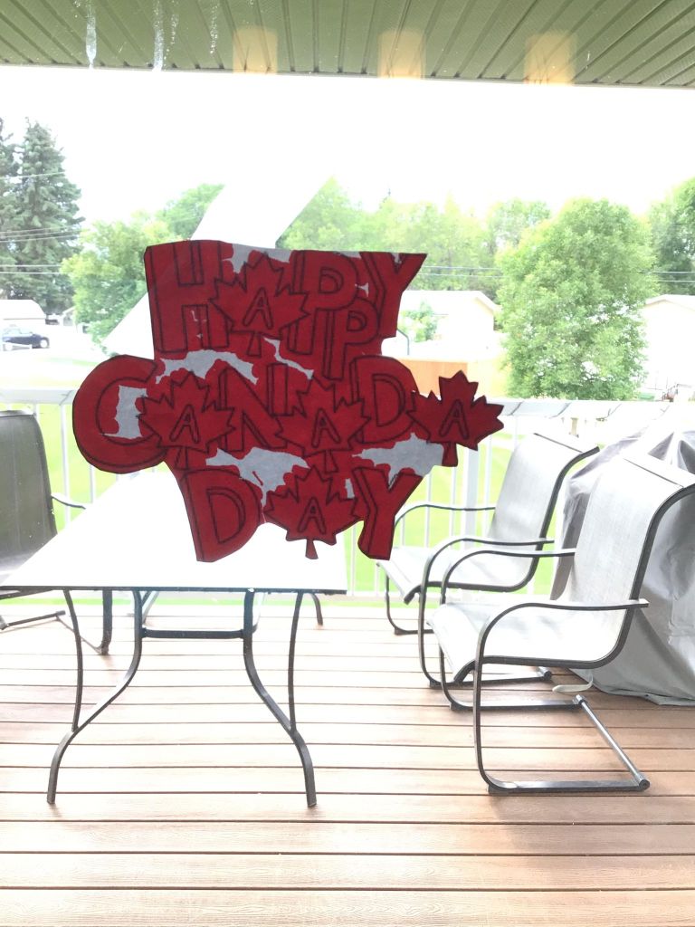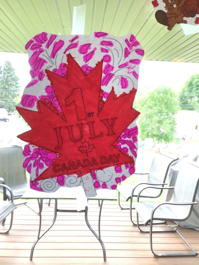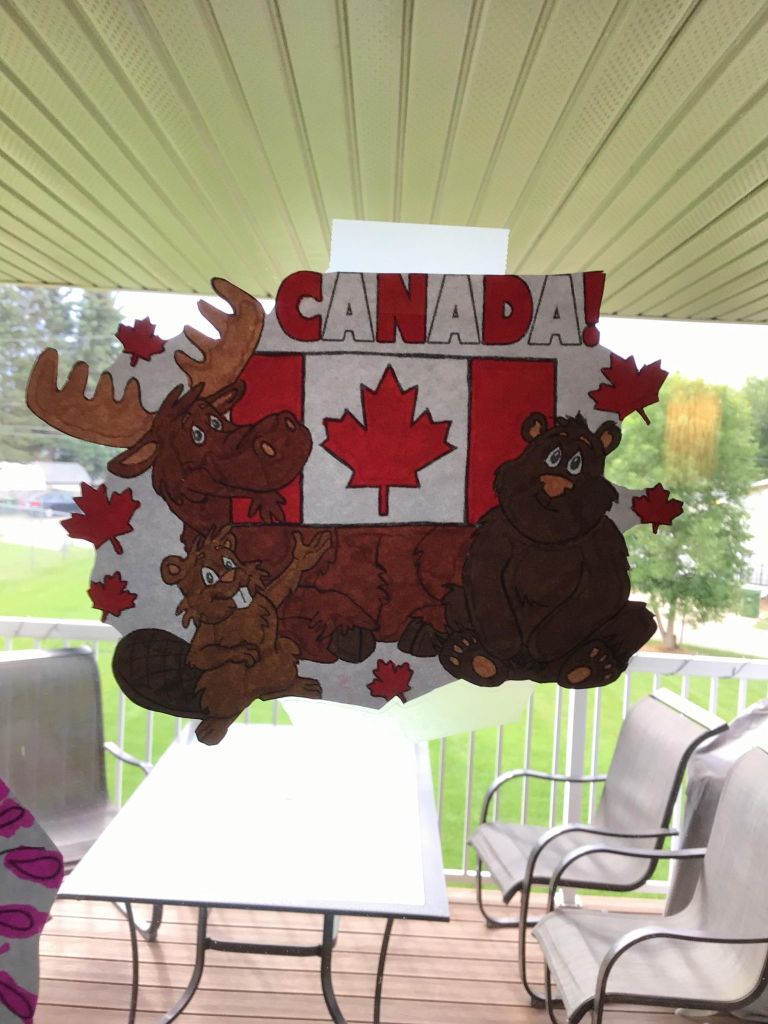 For Canada Day in the morning my dad and I went to the festivals at the museum and we tried to do the scavenger hunt of games , but they were all lower down to the ground and games I couldn’t play because I’m in a power wheelchair. I got to do the egg toss and it landed on my seat belt and broke. I got to play X and O’s and an word searches about Canada day. Then, in the afternoon my dad and I went to the car show downtown and looked at the fancy cars. Later on I coloured some Canada day themed pictures and put them on the window! We printed out some name tags that were maple leafs for our bedroom doors. In the middle of the night I could hear the fire works in my bedroom but I didn’t watch them. Happy Canada Day! My mom showed me my butterfly solar light , lit up in the darkness of the night! It’s so beautiful and pretty lighten up in the darkness sky!