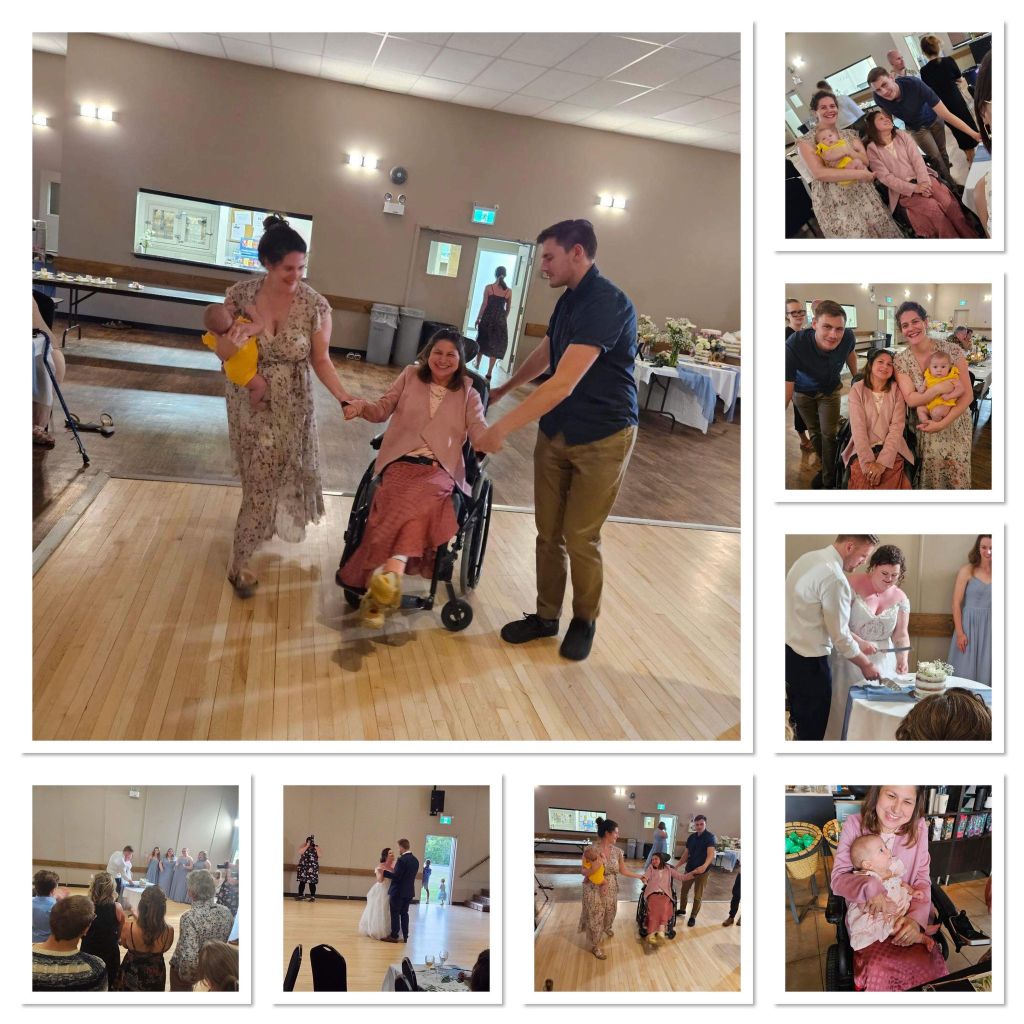 On Saturday afternoon We went to Elsye and David’s wedding at Four Seasons Rotary Park, and then they had the reception, cake cutting and the wedding dance at the Ohaton hall. In between the ceremony and the reception Nikki, Kathleen, and her husband Davin and I went out for Starbucks for coffee. I gave Evelyn a stuffed elephant that she loved to look at. We headed out for the reception at the Ohaton hall. We heard some speeches from the bridal party and the parents of the bride and groom! Then we had dinner. The wedding cake cutting and a game Who knows the bride and groom the best. We danced with everyone and we had a perfect evening to celebrate Elsye and David! Best wishes to the newlyweds.