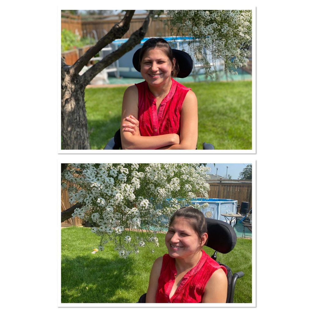 On Sunday afternoon I got to smell some flowers and went floating in our swimming pool!