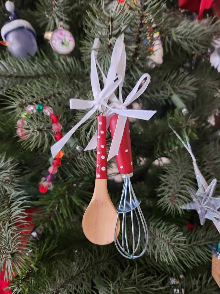 Cathie – Our tradition is to purchase an ornament that represents a first, or something that happened during the year so our Christmas tree tells a story. When we lose a member of our family, we buy an ornament that represents something they enjoyed/loved. Your Great Gramma Josie has cooking tools and your Great Grampa Peter had a tool belt on our tree.