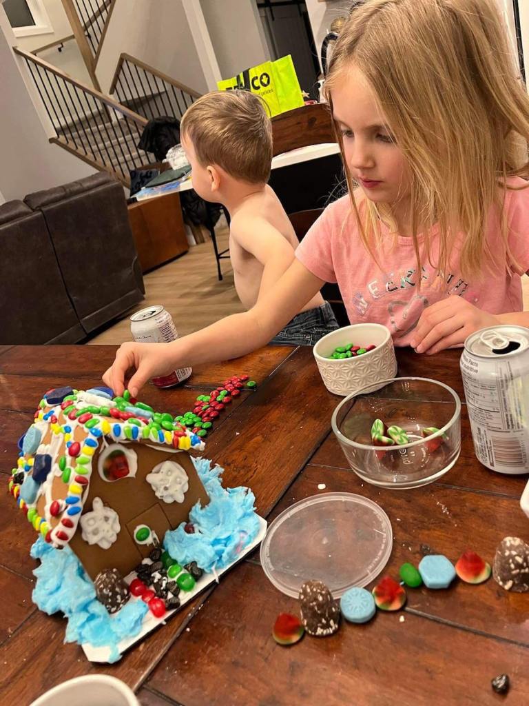 Courtney- Our traditions are new since having kids. We take Santa/Christmas photos every year, we do sugar cookie decorating, and we make handmade handprint ornaments every year to see how much the kids grow. One tradition that I have carried on from my childhood is making chocolate covered pretzels with my family and giving them away to important people in our lives.