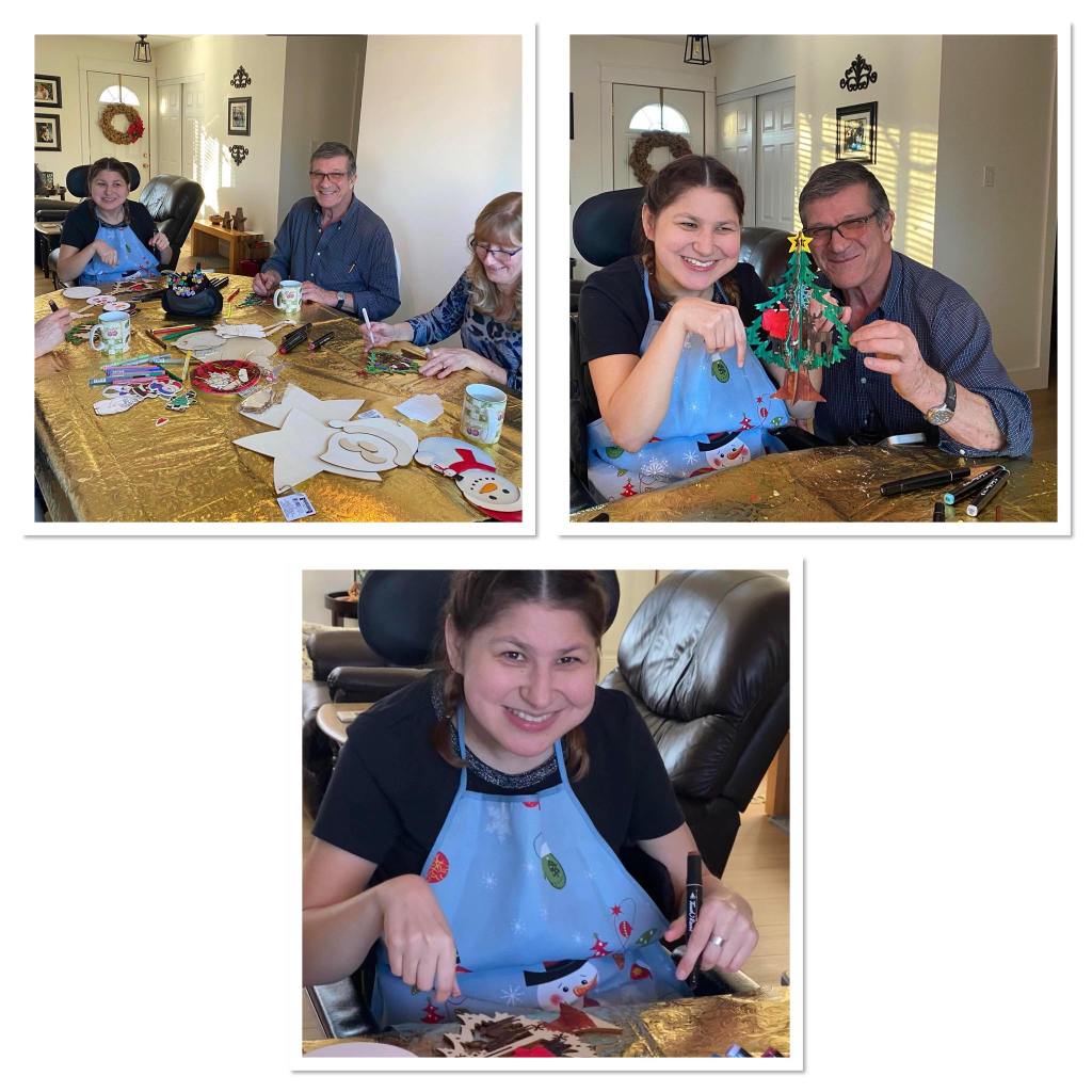 On Christmas Day, I helped to make stuffing, and then Luke and I opened the Christmas presents from our parents and our grandparents…. we’re going to do sibling’s Christmas gift exchange with Joel and Ashley in January. I got some clothes, day planner, cross stitch, wooden Christmas things to paint and bath bombs… some tattoos and resin art, bath towel and a diamond art. Luke got pens, pad of paper and a razor. We had our Christmas lunch and then in the afternoon we painted some wooden pictures of gingerbread house and snowman. Then my brother Luke went back to Edmonton as he had to work on Boxing Day. My parents and I went to watch Brian Dumont sing Christmas songs in his front yard and I saw Elsye and David! After we got home, My mom, dad and I watched home alone 2!