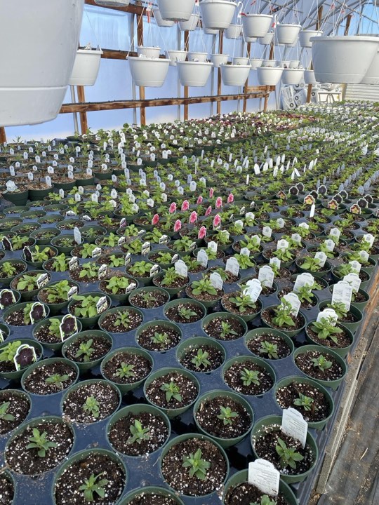 Sheila: I start the end of February. Seedlings get flown in from the Maritimes, and then we work hard to get them transplanted into bigger pots. There is usually a bit of a break until the flowers need to be pruned. I work on and off as needed after the transplanting is done, until the greenhouse opens.