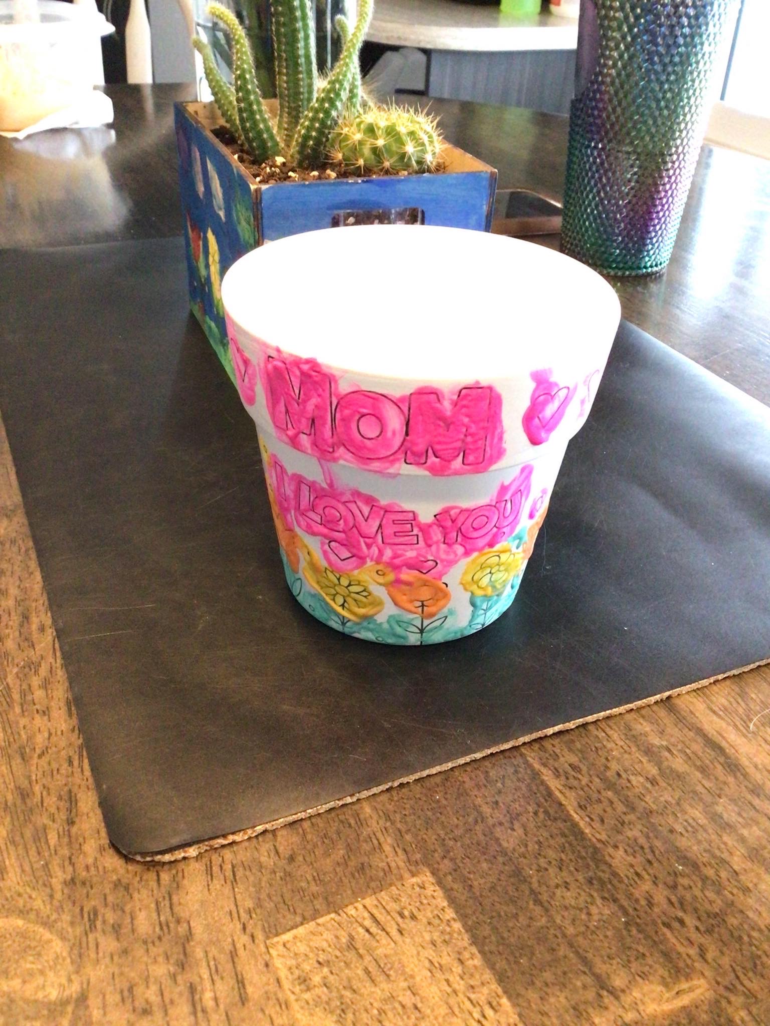 evening I painted a Mother’s Day plant pot for my mom for Mother’s Day . On