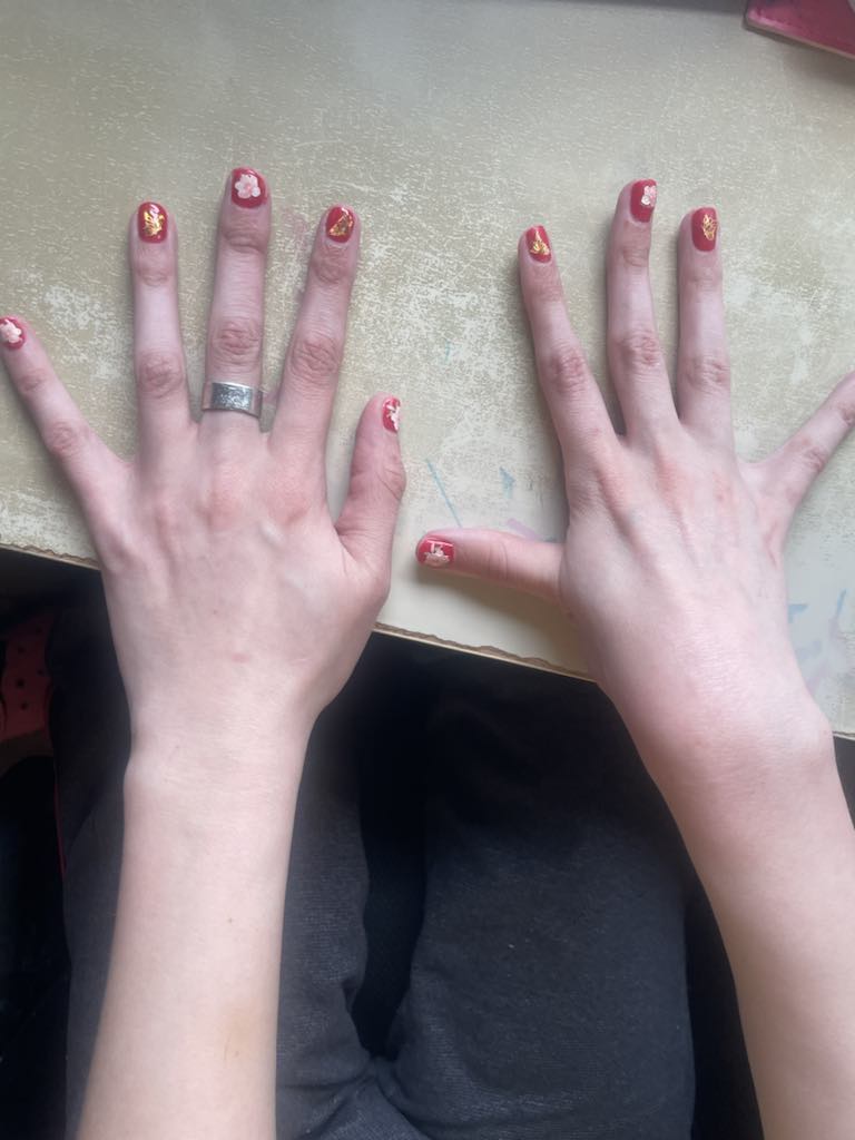 Saturday afternoon I got my fingernails painted red with butterflies for
