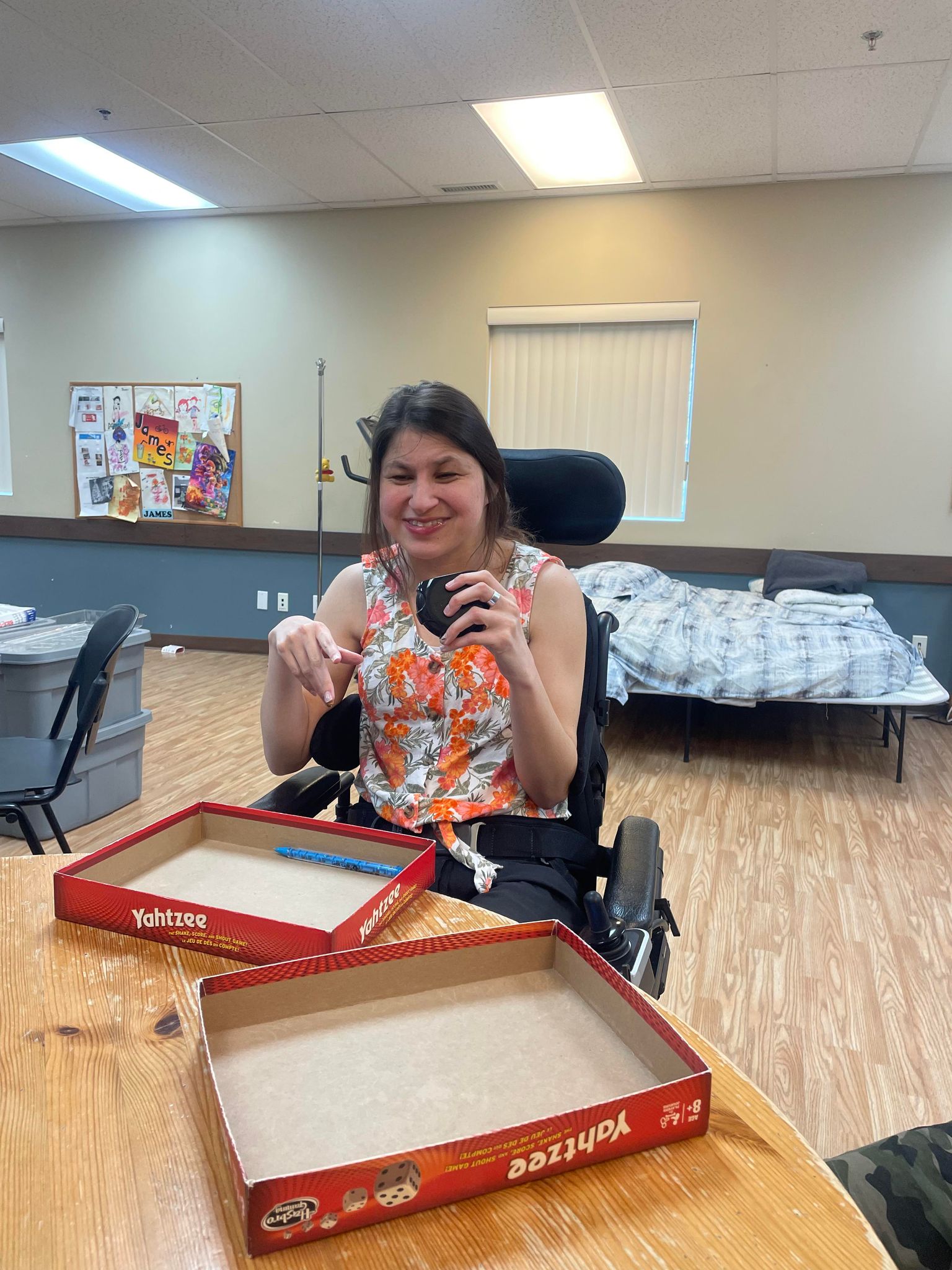 played a game of Yahtzee. Some people were playing Camrose Monopoly board game,