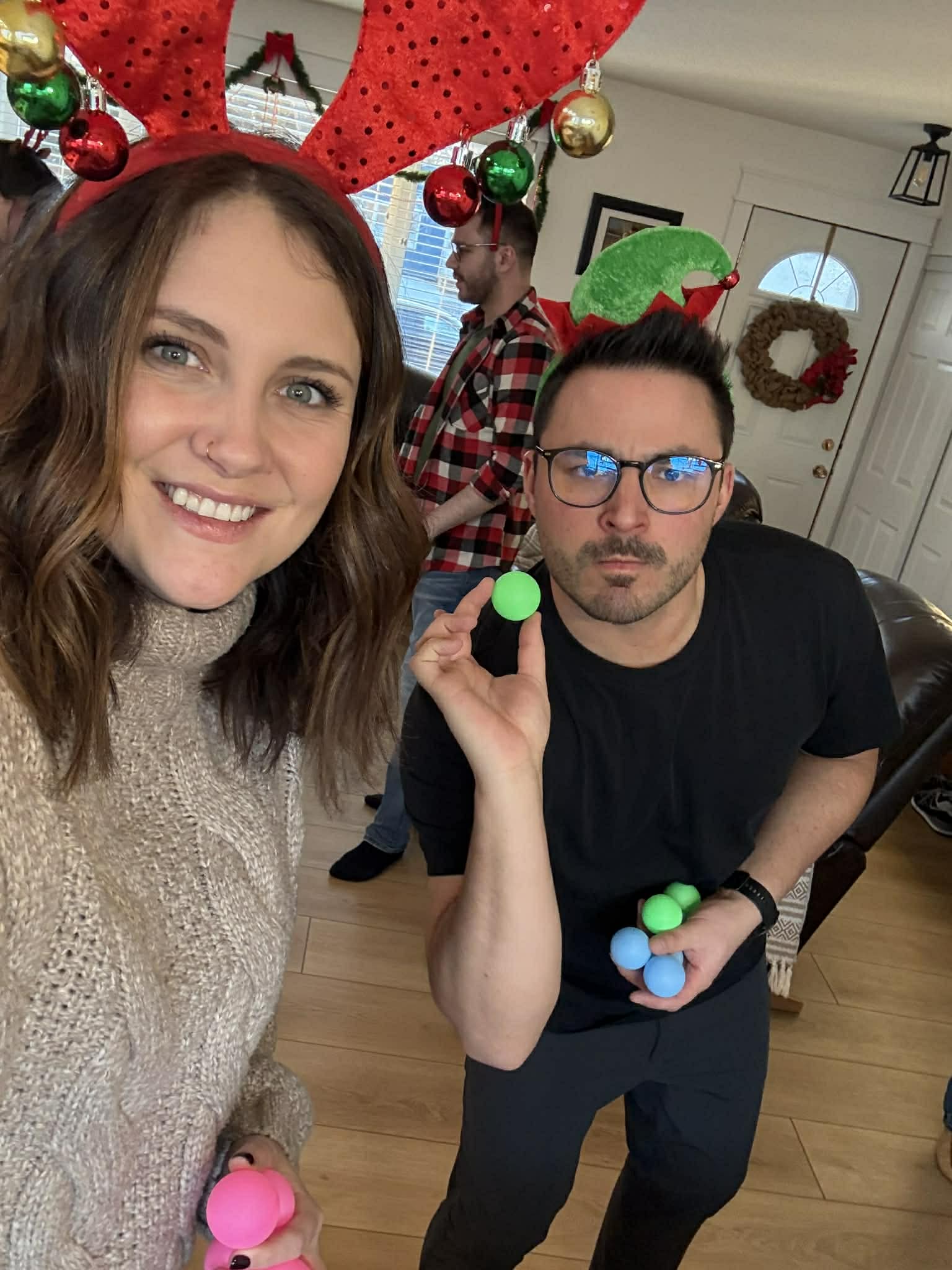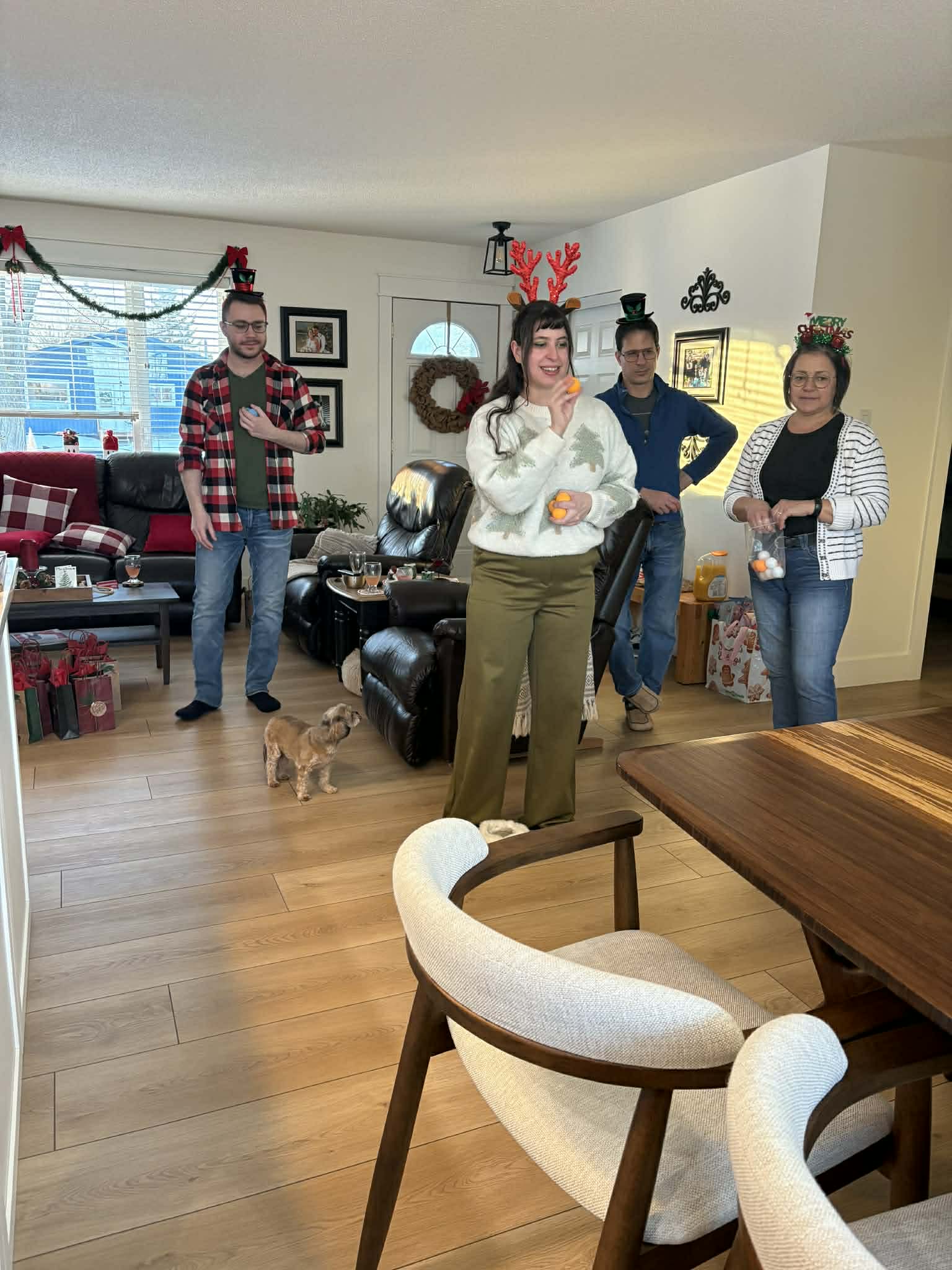 We celebrated our family Christmas and our dad’s 56th birthday celebration on Saturday with appetizers, homemade games and other activities such as a Chinese gift exchange. My dad requested cranberry cheesecake for his birthday cake. Unfortunately I was unable to attend because I was getting over being sick so FaceTime and pictures had to do. I got a blanket. Ashely got earrings. Joel got a fire extinguisher and my dad got a murder mystery game. Kiara, Luke’s girlfriend, got teas. Later in the evening, they played Pictionary air. Looks like a difficult game to play!