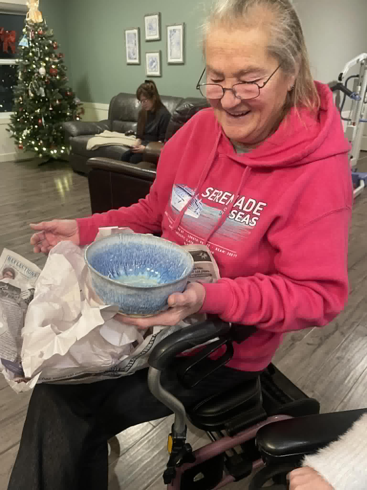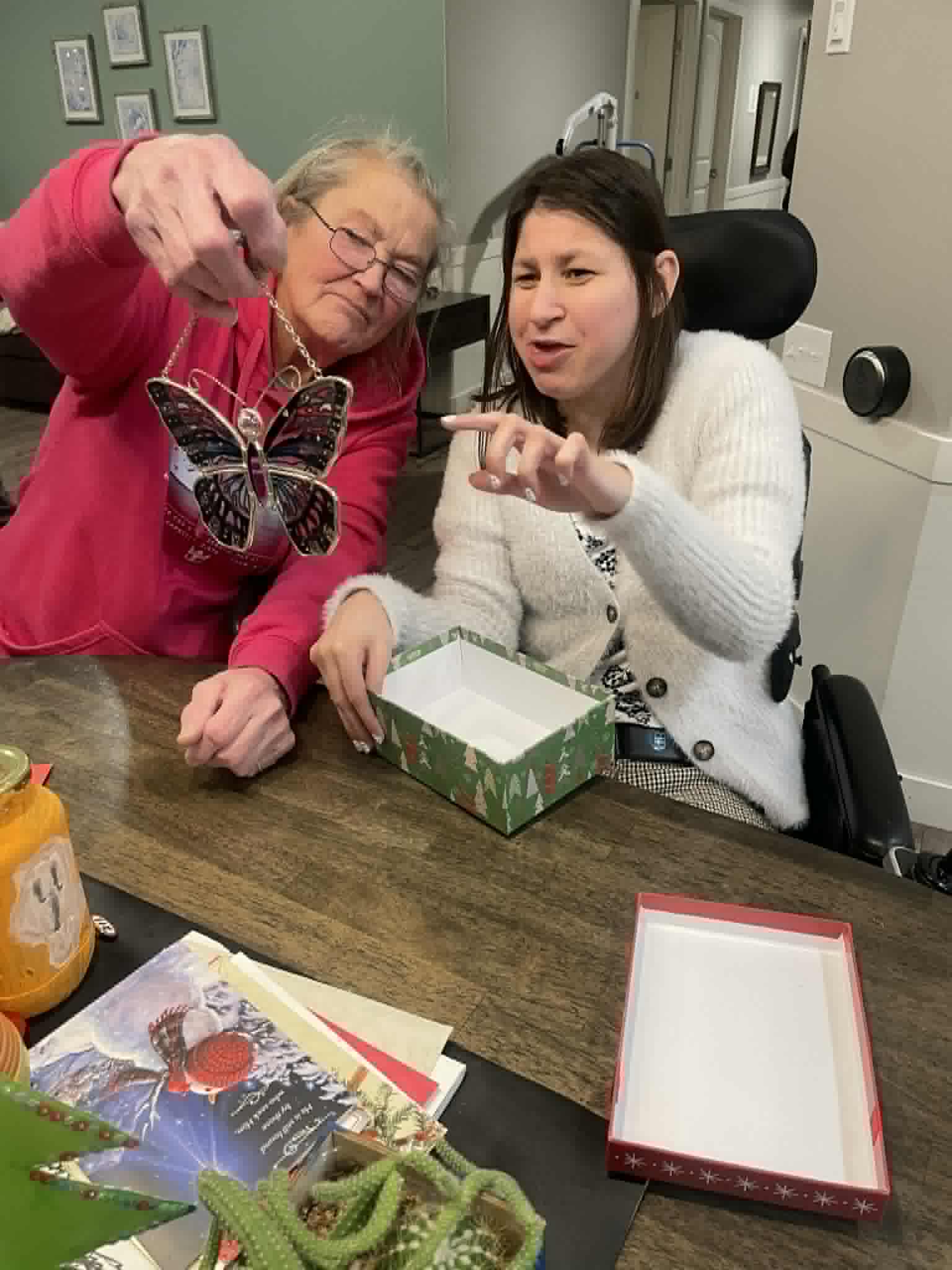 It’s a merry berry Christmas and happy belated 56th birthday to my dad! I made him a birthday card that said Ho ho Ho happy 56th birthday and decorated with snowflake stickers and musical stickers. I got him a musical wall ornament for his music room/ office downstairs! On Sunday afternoon we had our roommate gift exchange with our roommates and I got some fuzzy Christmas pj’s shorts and some fuzzy socks! Tuesday evening, Maryann and I exchanged our Christmas gifts for each other. I bought Maryann a beautiful bowl and she gave me a beautiful butterfly that goes on your window!