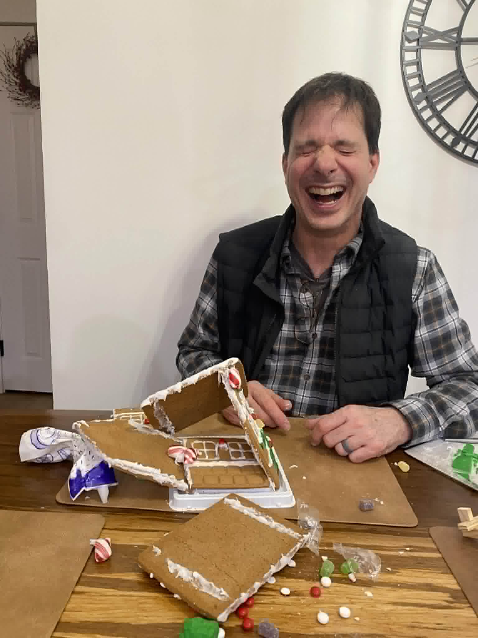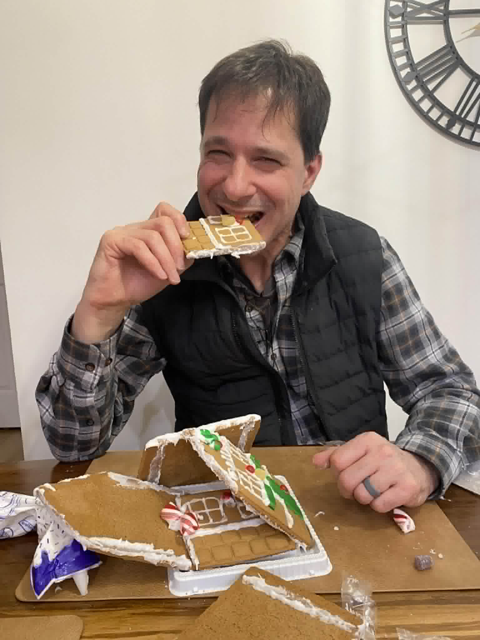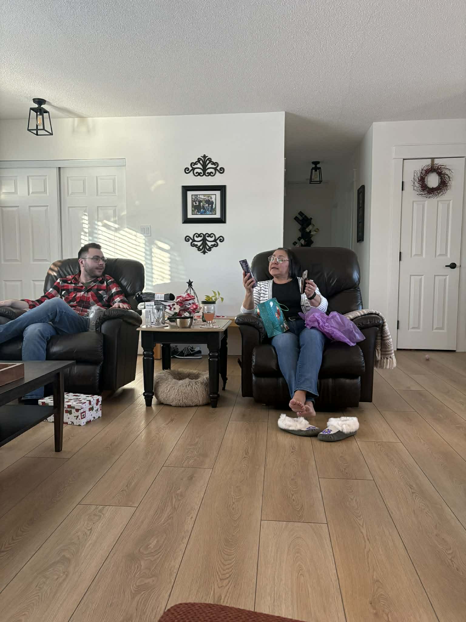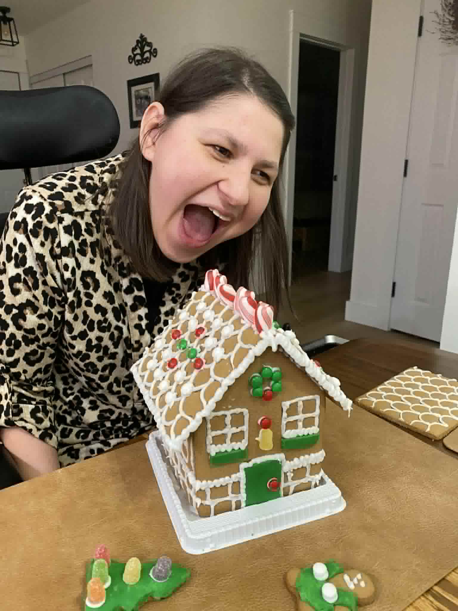 On Christmas Eve, during the afternoon, my parents and I made some bell ornaments. Then I got to open Christmas presents from my Best Friend Teresa Mae who spoiled me with a keurig, tea and coffee, colouring books and paint sticks. Kiarra and Luke gave me socks and lotion . Mom and dad gave me jeans, mitts, diamond art, a day planner, socks, lotion, shower gel, cross stitch, barrettes and coffee, and Joel and Ashley gave me a blanket. We watched The Flight before Christmas and decorated gingerbread houses in the evening. Unfortunately my dad’s house had a little disaster, so on that note, mom and I won the contest! We watched That Christmas! Which was very cute and sweet!