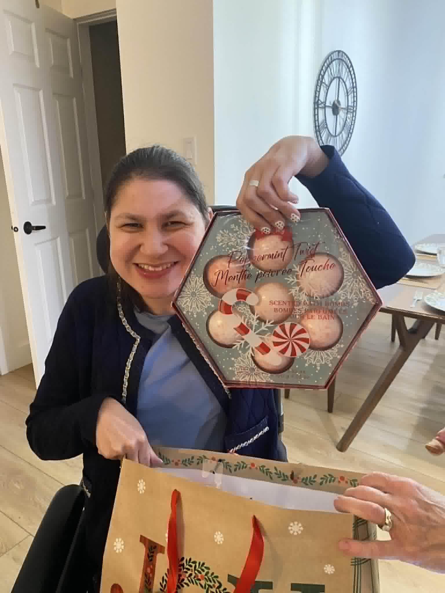 On Christmas Day we coloured in the colouring books and watched our family’s homemade videos. Then our company came over, we made Christmas diamond art with grandpa and Sandy. Then we had Christmas dinner and played dice poker. I also got to open some more Christmas presents from grandpa and Sandy. They gave me bath bombs , earrings and a sweater. After our company left we watched Merry Ex- Christmas. It was a perfect, merry Christmas!