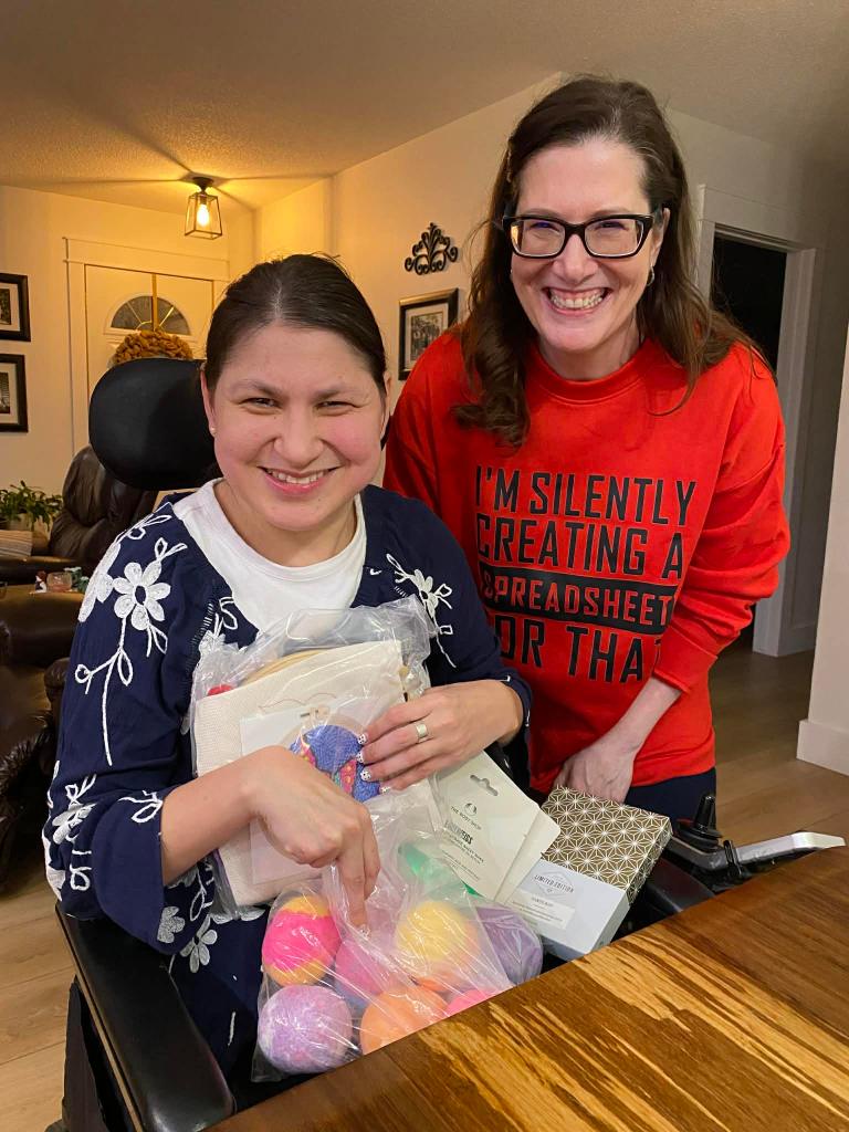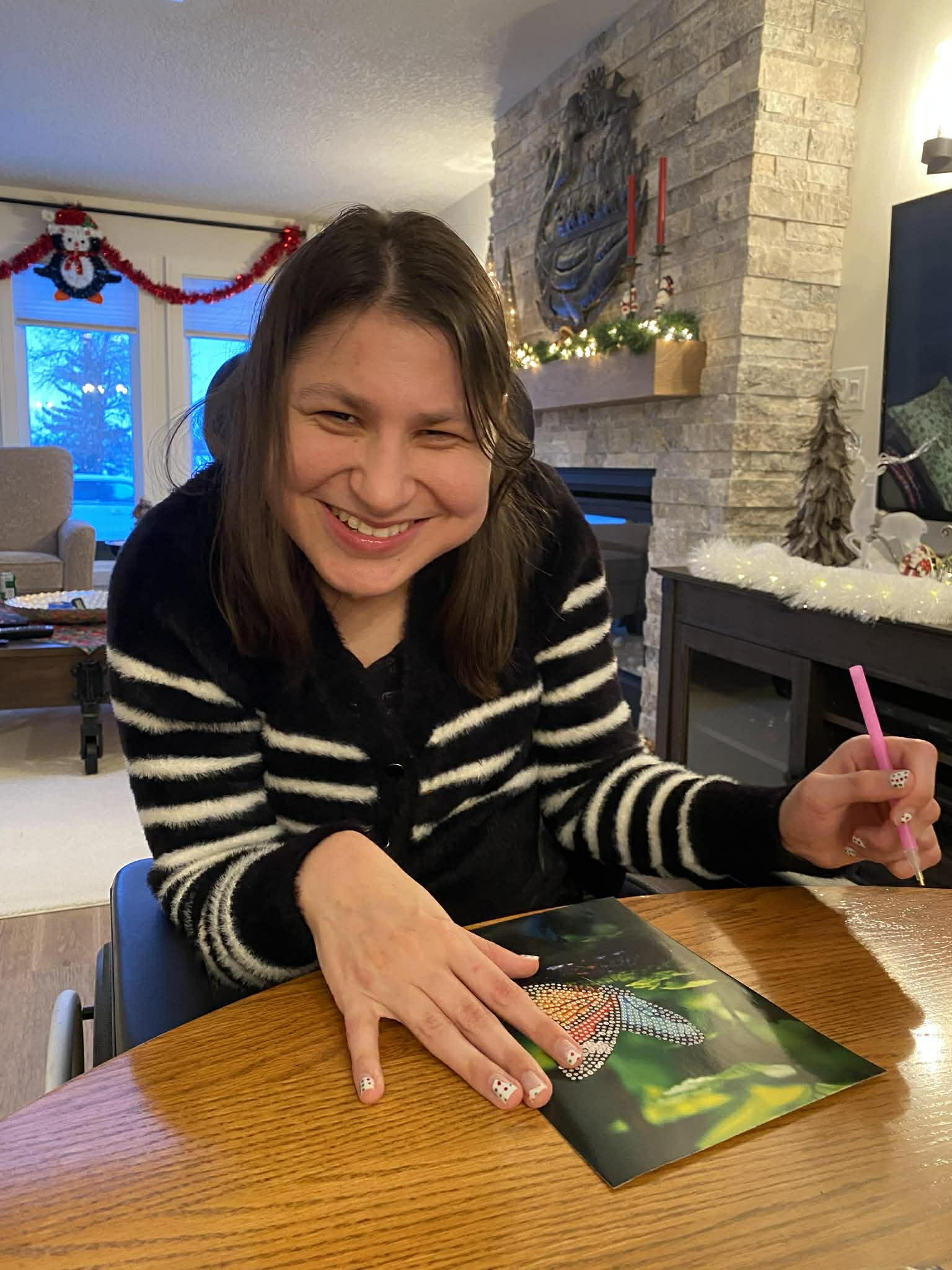 I remember when my parents were in Hawaii and Melanie stayed with me for a whole week, I remember that she was the Kandu summer leader during the summer at Camrose Association For Community Living and she also worked at the program for kids, during the school year at CAFCL. We used to have sleepovers and go to Edmonton for swimming, crafts and arts at the office. I remember when she had her oldest daughter named Rhyelle and she came to visit me with her sister Kirsten. She is such a sweet and friendly girl friend!