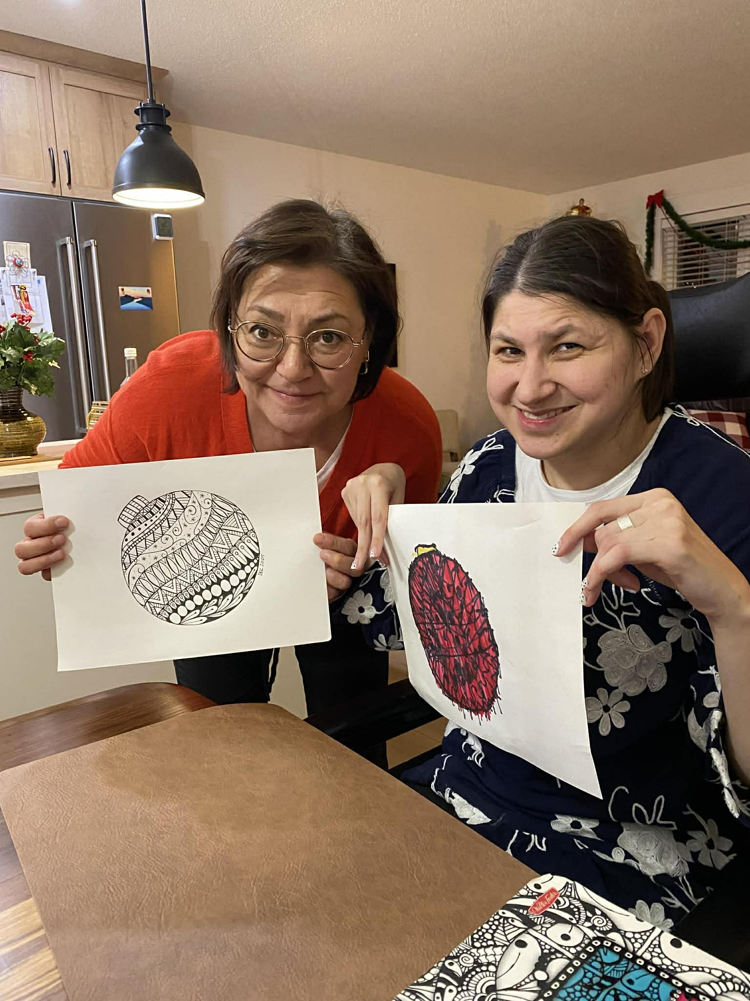 On New Year’s Eve we celebrated with my auntie Gail and uncle Wayne, we ordered Chinese food from Skyway. I brought auntie Gail a book of zentangle and some pens. Auntie Gail brought me a craft with yarn, earrings, winners gift card, and bath bombs. After dinner and exchanging Christmas presents we drew zentangle Christmas ornaments to teach auntie Gail how it’s done! We finished off the evening with face masks and leftovers Christmas treats!